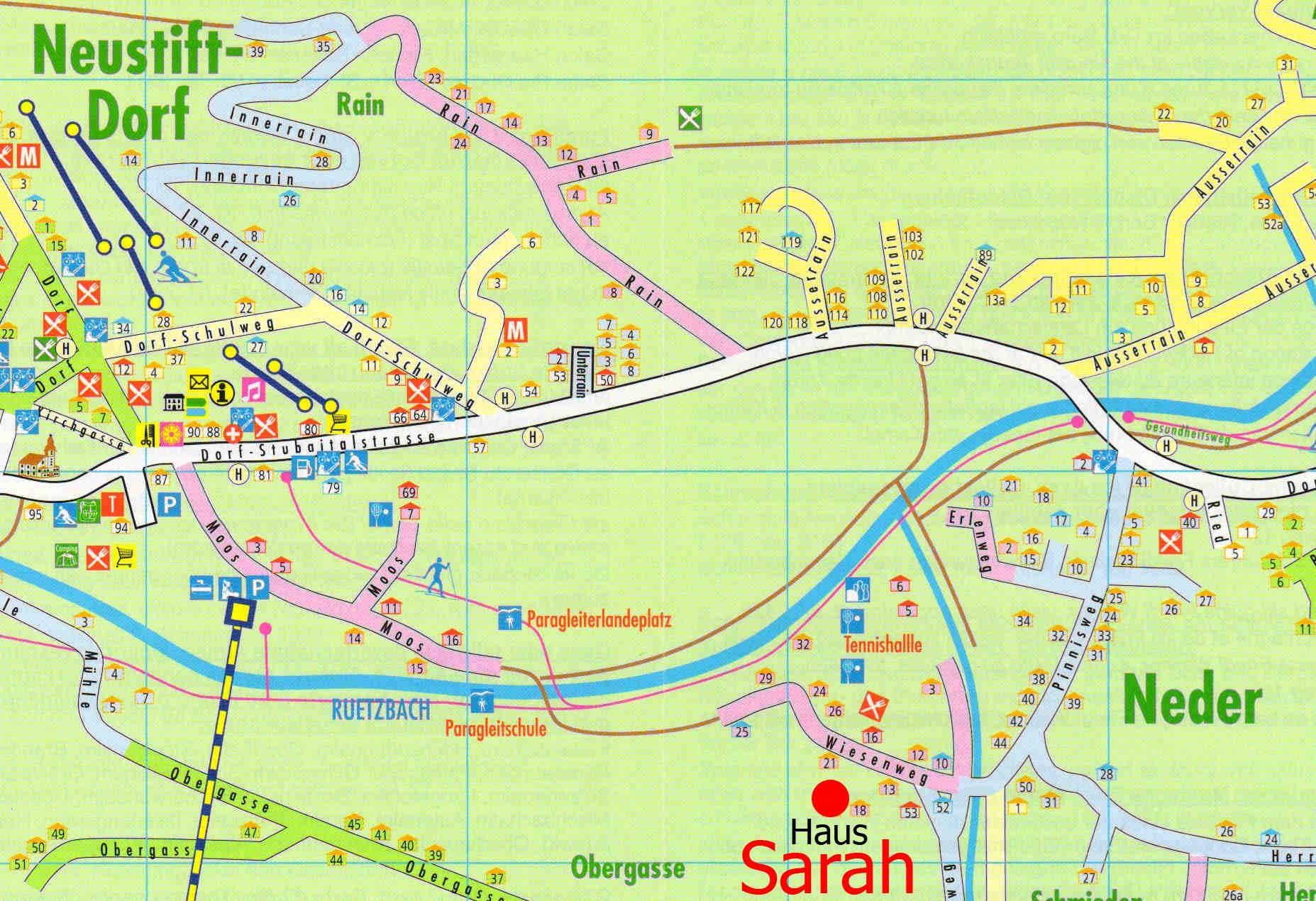 Verbringen Sie Ihren Urlaub in unserem familiär geführten Haus Sarah in Neustift im Stubaital in geräumigen Komfortzimmern mit Balkon oder gemütlichem Apartment, atemberaubender Aussicht auf die Stubaier Alpen und ins Grüne. Unsere zentrale und ruhige Lage im malerischen Ortsteil Neder, nur 20 Minuten zu Fuß von Neustift entfernt, bietet Ihnen in Gehweite eine Pizzeria. Cafés und Supermärkte finden Sie in Neustift und Kampl. Der kostenlose Skibus zum Stubaier Gletscher hält nur 3 Gehminuten (200 m) vom Haus Sarah entfernt. Wir sind ein Nichtraucherhaus. Für die Verpflegung auch nach Geschäftsschluß gibt es Verkaufsautomaten bei der Pizzeria Salute.