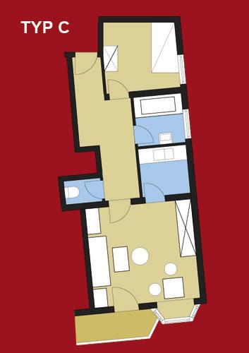 • Schlafzimmer und Wohnschlafraum • Telefon • Sat-TV • Safe • W-Lan Internet • Bad mit Badewanne oder Dusche • Haarfön • Radio • Küche mit gemütlicher Essecke und kompletter Ausstattung (Mikrowelle, Geschirrspüler, Kühlgefrier-Kombi, Kaffemaschine, Geschirr etc.)