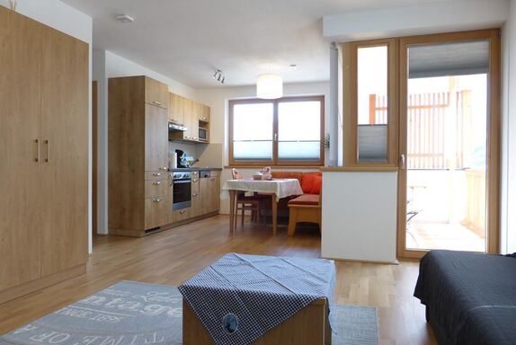 In unserem 2013 neuerbauten Haus der Berge bieten wir Ihnen drei Ferienwohnungen für max. 3-4 Personen. Alle Ferienwohnungen sind hell und modern eingerichtet und verfügen über ein Schlafzimmer und einen Wohnschlafraum. Das Badezimmer ist mit Dusche und WC ausgestattet. Die Wohnküche mit vollausgestatteter Küchenzeile lädt dazu ein, einen Abend nach einem aufregenden Tag gemütlich ausklingen zu lassen. Von Ihrem Balkon aus können Sie die frische Bergluft und den schönen Ausblick ins Stubaital genießen.