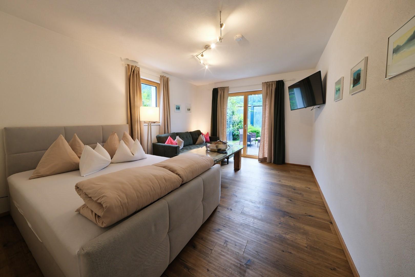 Das Appartement mit 65 m2 verfügt über 1 Schlafzimmer, 1 getrenntes Wohnzimmer mit Boxspringbett für 2 Personen, Küche, Badezimmer mit Sauna, getrennte Toilette und Schrankraum.