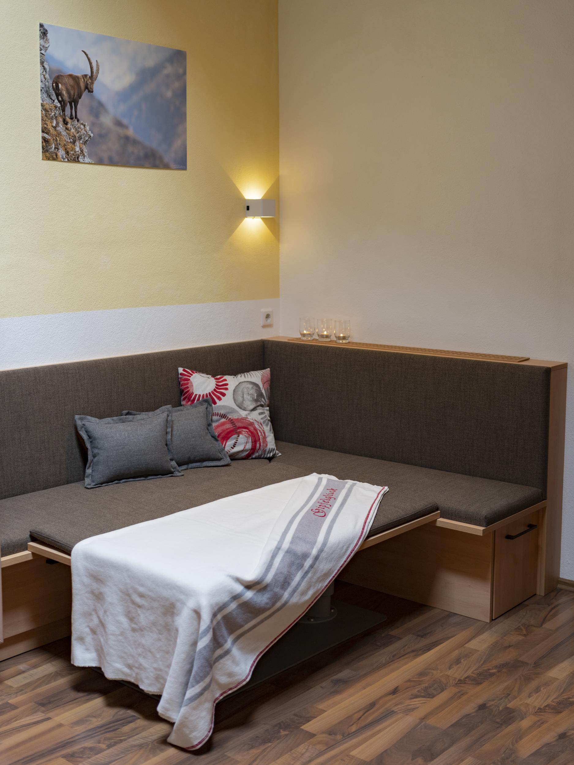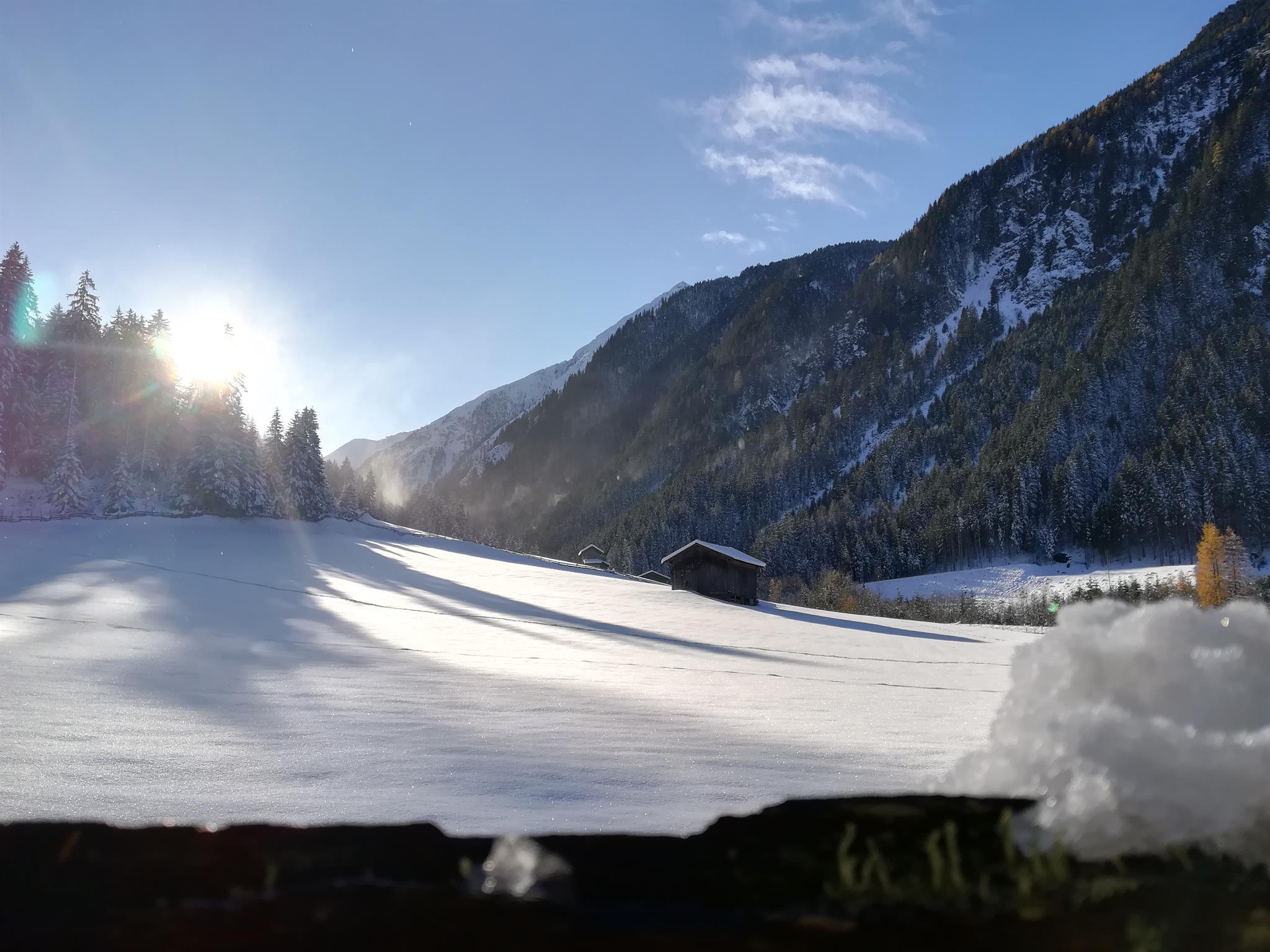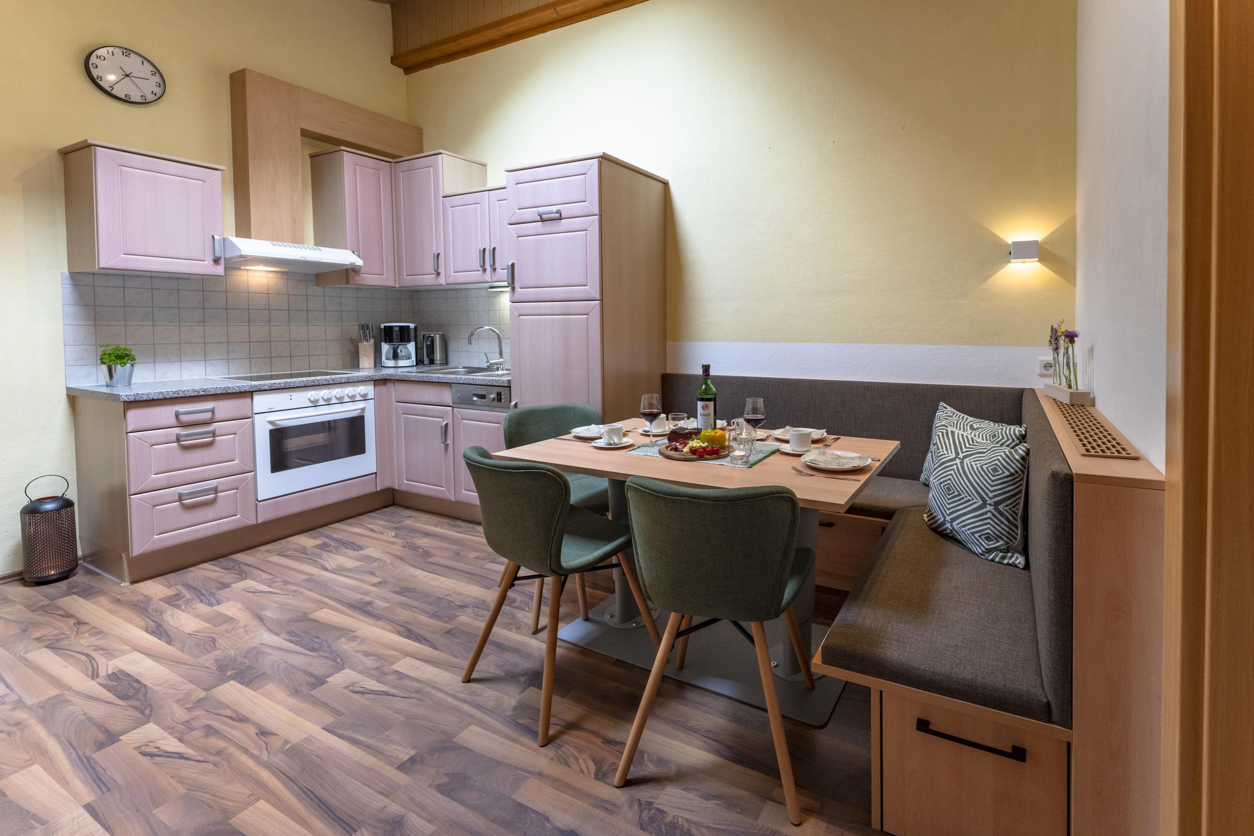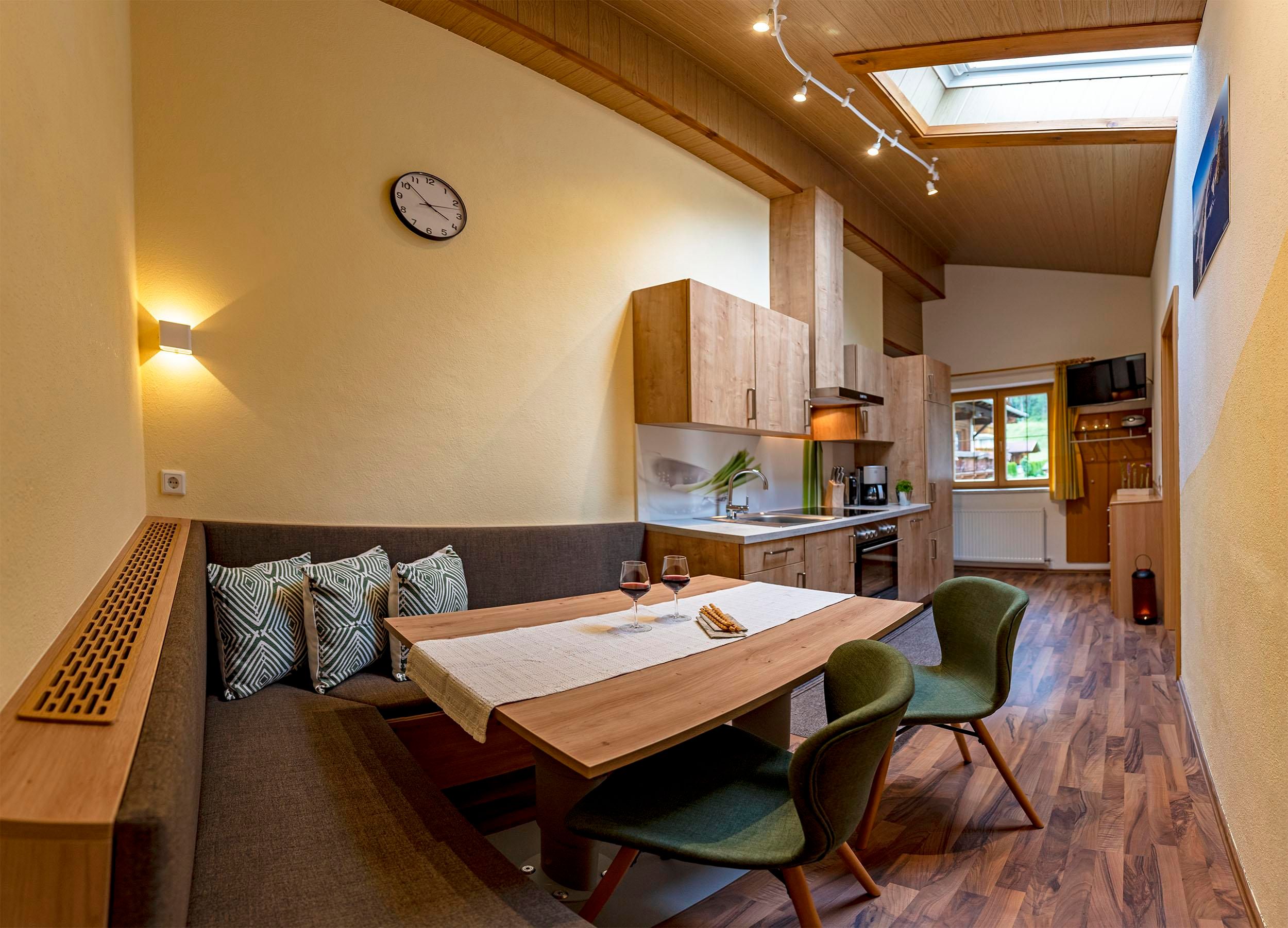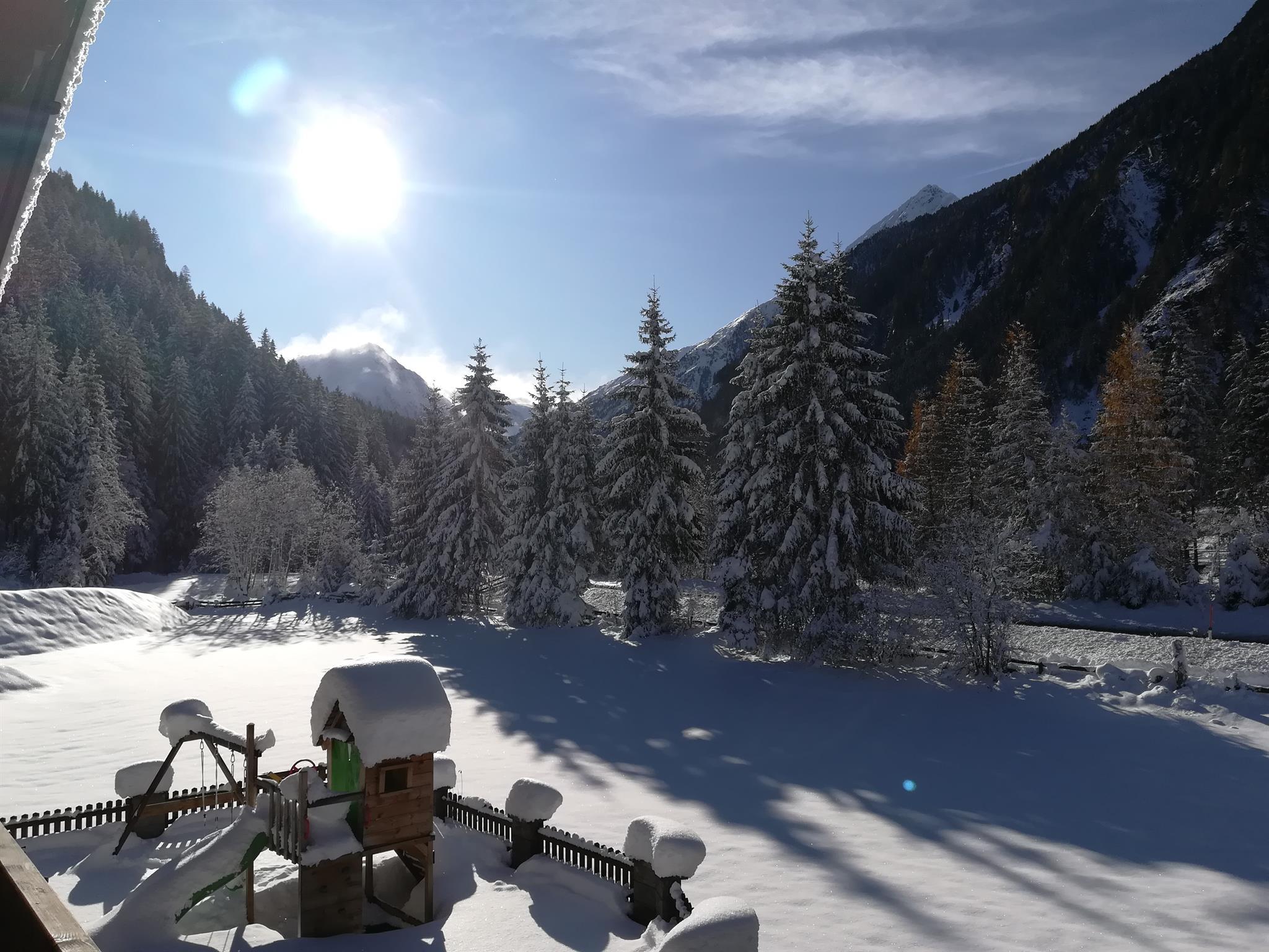 Die gemütlich und komfortabel eingerichtete Ferienwohnung bietet Platz für 2-4 Personen. Unsere Ferienwohnung Enzian ca. 45m2 besteht aus 2 getrennten Doppelzimmern, einen Wohnraum mit Dachfenster und Küchenblock (ausgestattet mit Kühlschrank, Herd, Backrohr, Geschirrspülmaschine, Kaffeemaschine mit Filter, Wasserkocher, Eierkocher, Brottoaster, ...), Sat-TV und CD-Radio sowie Dusche, WC getrennt und Balkon mit Gletscherblick. Bettwäsche, Hand-, Dusch-, Geschirrtücher, Toilettenpapier und Reinigungsmittel sind inkludiert, auf Wunsch bestellen wir Ihnen Ihr Frühstücksgebäck bei unserem Bäcker. Parkplatz ist vor dem Haus genügend vorhanden. Ein separater Abstellraum für die Ski inkl. Skischuhwärmer steht ebenfalls zur Verfügung.