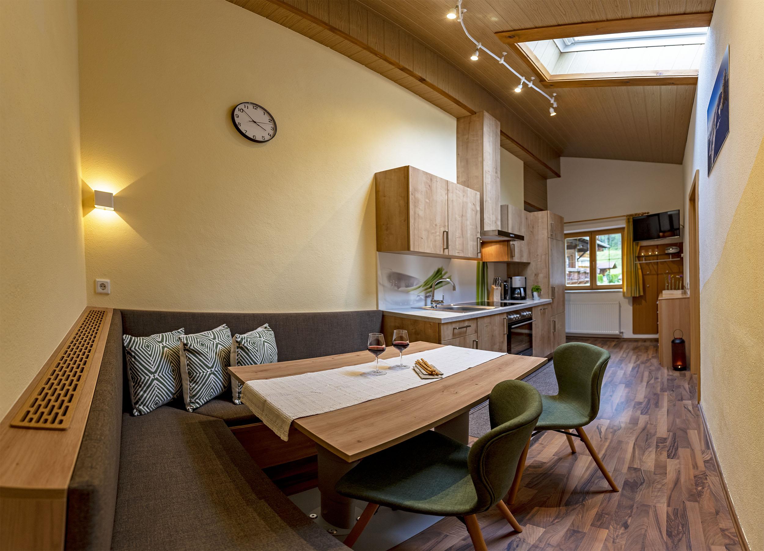 Die gemütlich und komfortabel eingerichtete Ferienwohnung (ca. 55 m²) bietet Platz für 2-6 Personen. Das Appartement besteht aus 3 getrennten Doppelzimmern, einen Wohnraum mit Küchenblock (ausgestattet mit Kühlschrank, Herd, Backrohr, Geschirrspülmaschine, Kaffeemaschine mit Filter, Wasserkocher, Eierkocher, Brottoaster, Sat-TV und CD-Radio sowie Dusche, WC getrennt und Balkon mit Gletscherblick. Bettwäsche, Hand-, Dusch-, Geschirrtücher, Toilettenpapier und Reinigungsmittel sind inkludiert, auf Wunsch bestellen wir Ihnen Ihr Frühstücksgebäck bei unserem Bäcker. Parkplatz ist vor dem Haus genügend vorhanden. Ein separater Abstellraum für die Ski inkl. Skischuhwärmer steht ebenfalls zur Verfügung.