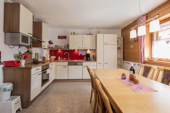 Küche: Backofen, Ceran Kochfeld, Elektroherd, Gefrierfach, Geschirrhandtücher, Kaffeemaschine, Küchenzeile, Kühlschrank, Mikrowelle, Toaster, Wasserkocher