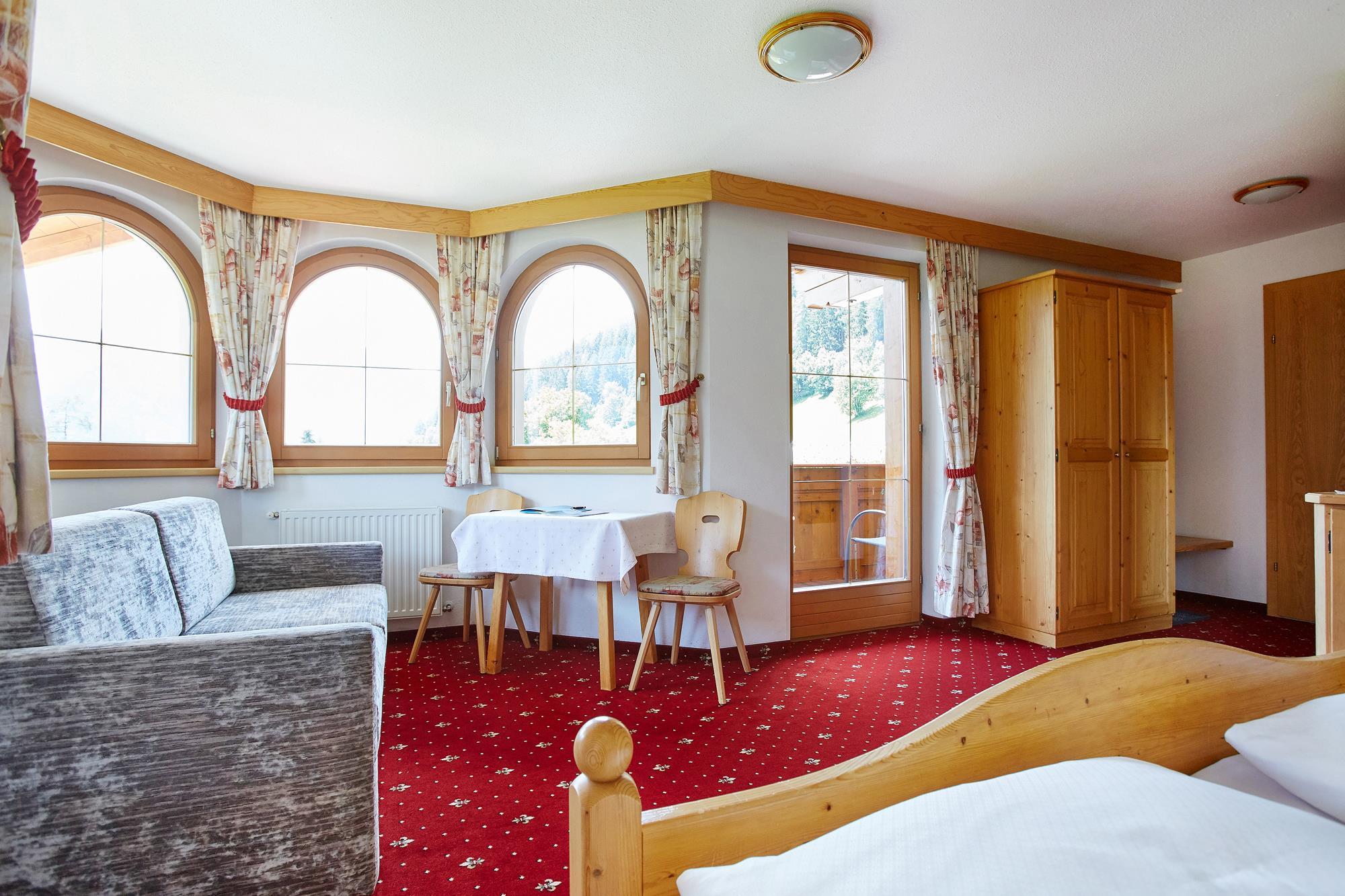 Die Zimmer und Apartments sind im traditionellen Tiroler Stil eingerichtet und mit Dusche/Bad mit Haartrockner, WC, Sat-TV, Telefon und Minibar ausgestattet und haben Balkon oder Zugang zum Balkon über den Flur. Ein reichhaltiges Frühstück ist inbegriffen. Sie können zu Mittag oder am Abend in unserem Restaurant nach der Karte essen. Ein Fahrradraum und kostenfreie Parkplätze tragen zum Komfort bei.