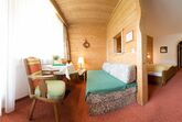 Es erwarten Sie 3 Mehrbett- bzw. Familienzimmer mit Doppelbett und einer durch eine Holzwand abgeteilte Sitzecke und sonnigem Balkon.