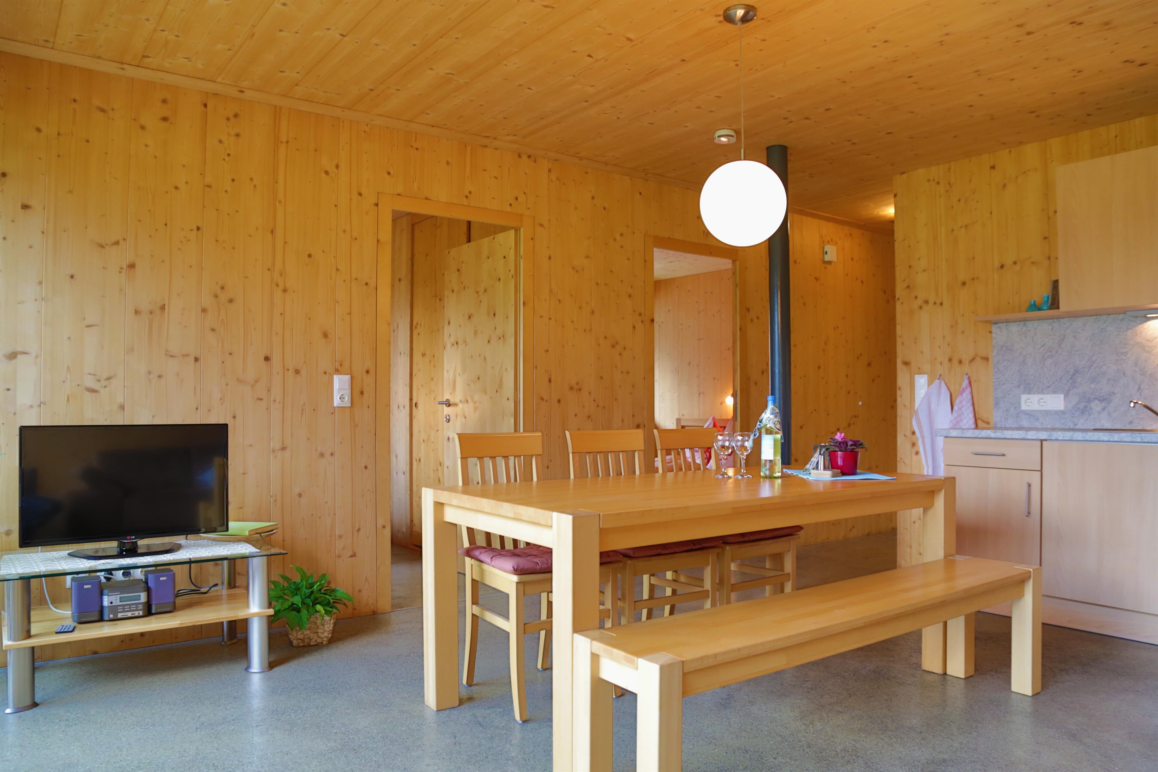Unser Bioholzhaus ist nur mit natürlichen Materialien gebaut ( ideal für Allergiker ) und verfügt über 2 gleichwertig ausgestattete Apartments ( 55 m2 ), mit einem großen Wohnküchenbereich, 2 Schlafzimmer und Dusche/WC oder Bad/WC und Terrasse oder Balkon. Jedes Apartment bietet Platz für 2-4 Personen. Das Haus mit großem Garten liegt in unverbauter Lage inmitten von Wiesen mit freiem Blick auf die umliegenden Berge.