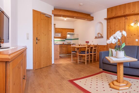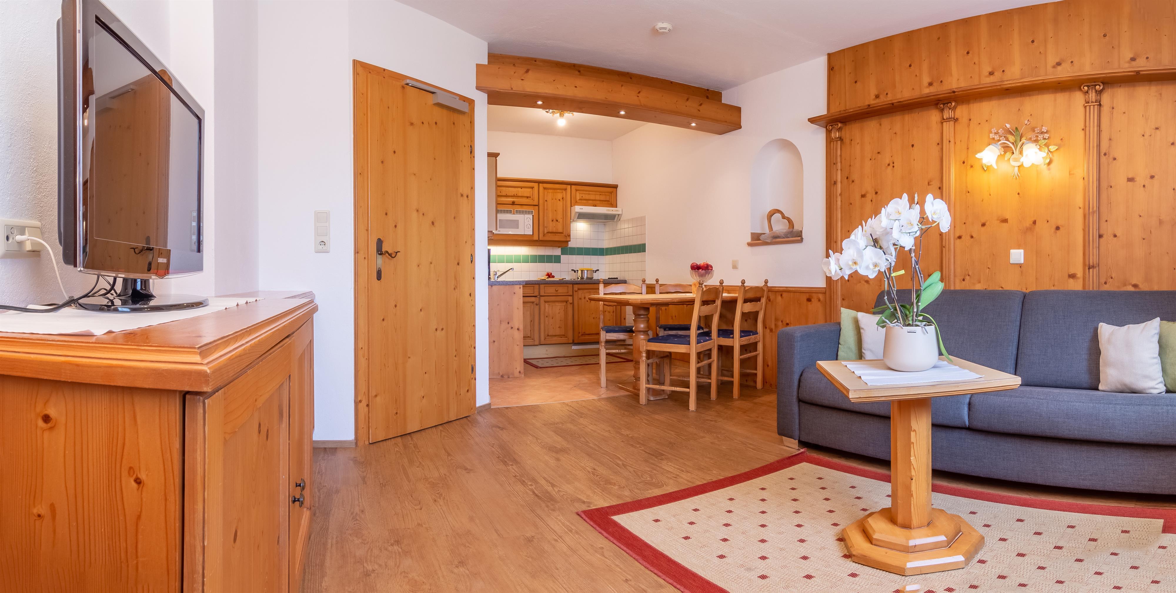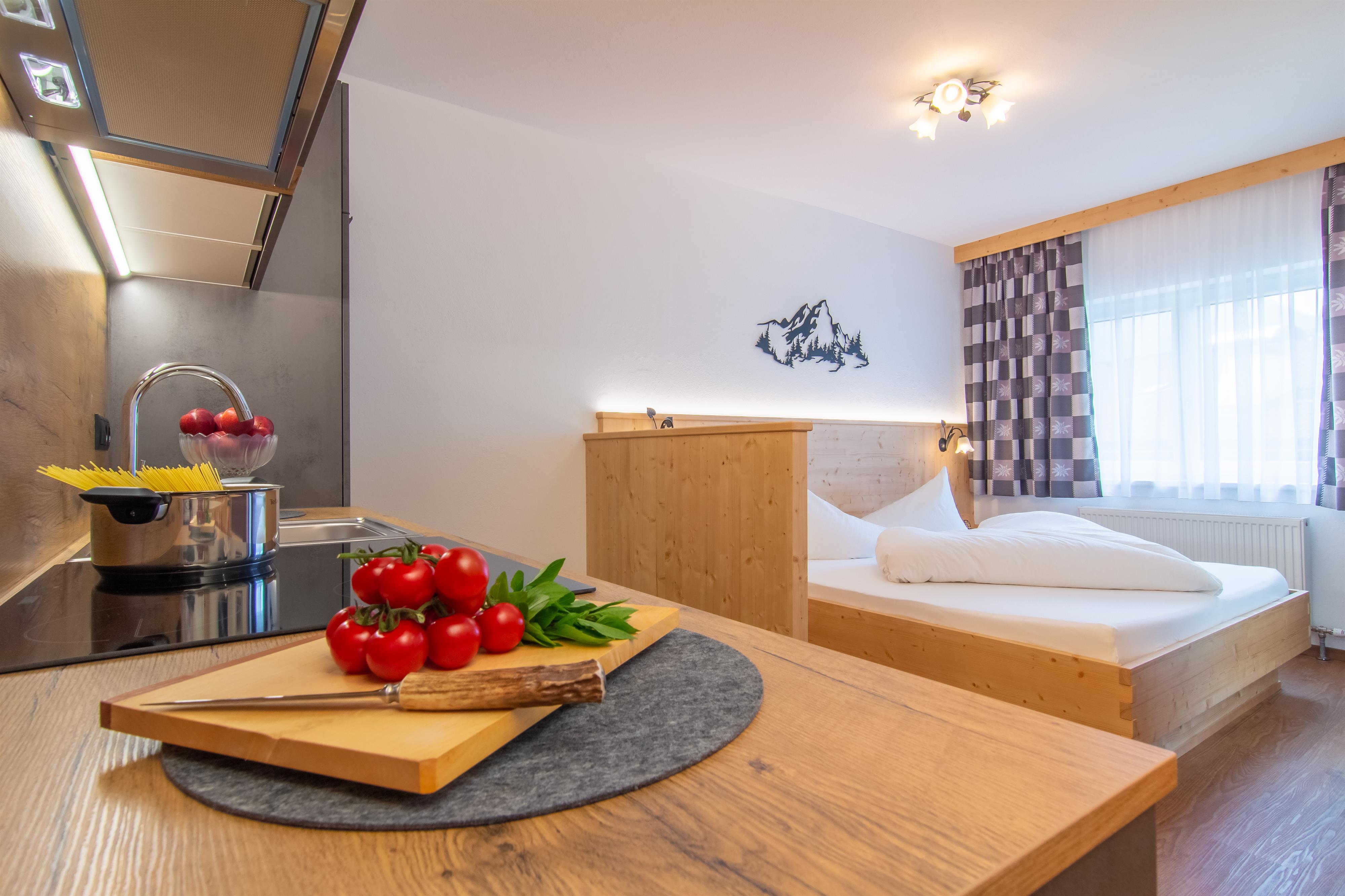Unser Apartment Elferblick bietet mit ca. 45m² Platz für 2-4 Personen und befindet sich im 1. Stock mit herrlichem Ausblick auf die Stubaier Bergwelt.