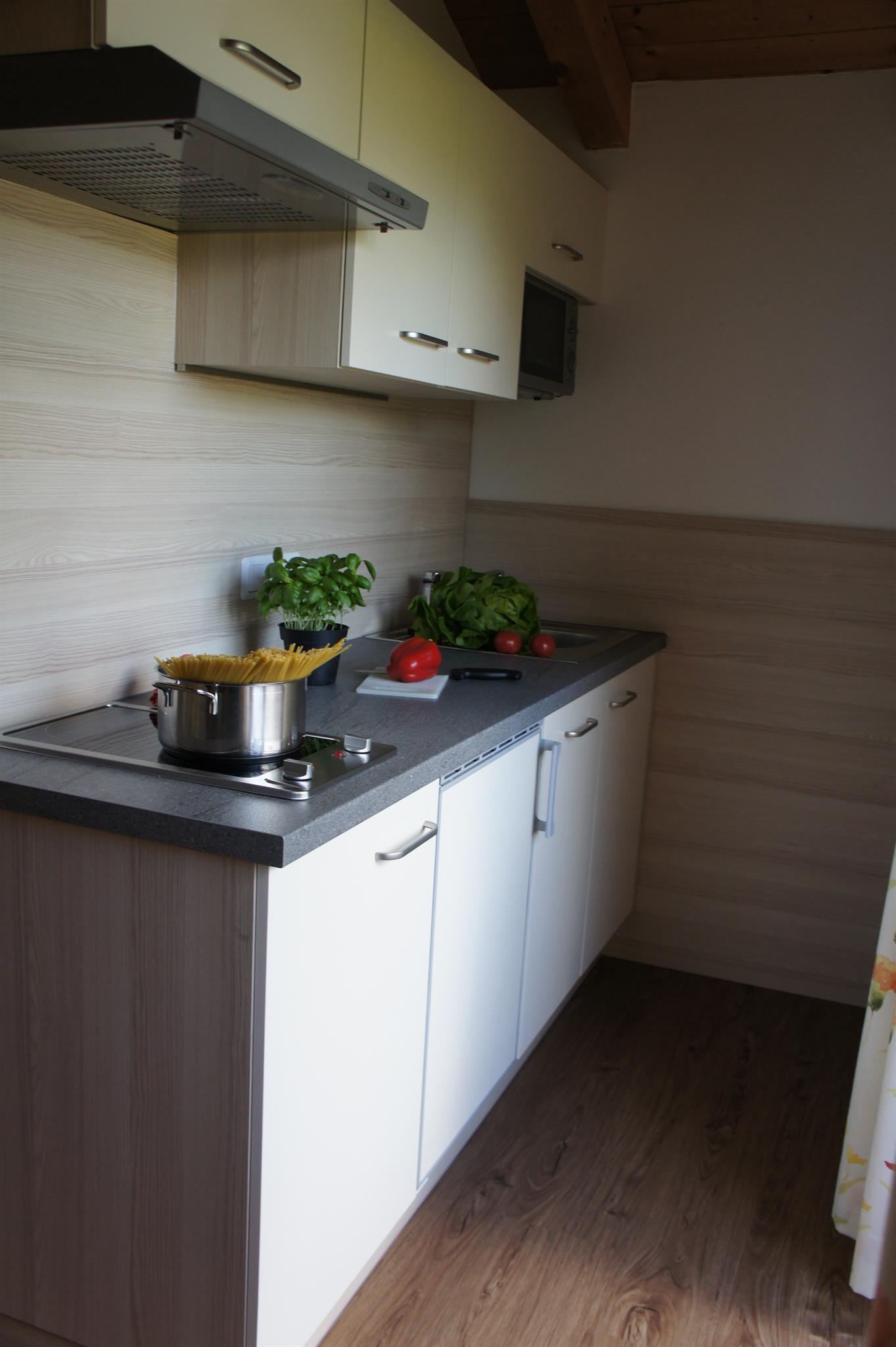 Wohnung Chiara ca. 40m² 2-4 Personen mit 1 großem Schlafzimmer, DU/WC, Süd-Balkon und Küche, Austattung: Sat.TV, Fön, Safe, Geschirrspülmaschine, Kaffeemaschine, Mikrowelle, E-Herd mit Backofen, Wasserkocher und Toaster, Brötchenservice, Preise ohne Ortstaxe