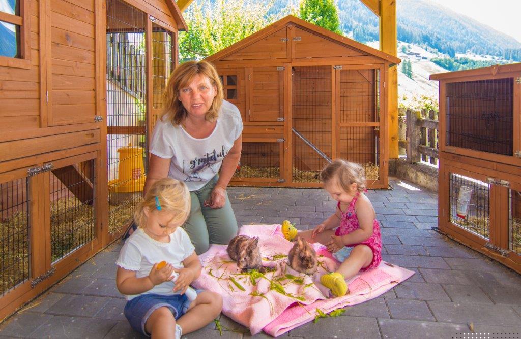 Während unsere Gäste die Sonnenstrahlen genießen, kann der Nachwuchs den TÜV geprüften Spielplatz und den Streichelzoo beim Ausserwieserhof nebenan erkundschaften. Die Hasen Flippi und Flauschi lassen sich gerne mit Streicheleinheiten verwöhnen oder mit frischem Gras und würzigem Bergheu füttern. Auch die 2 Meerschweinchen wollen gut versorgt sein. Der Hit auf diesen Bauernhof sind die zwei Zwerghühner Agatha und Amalia.