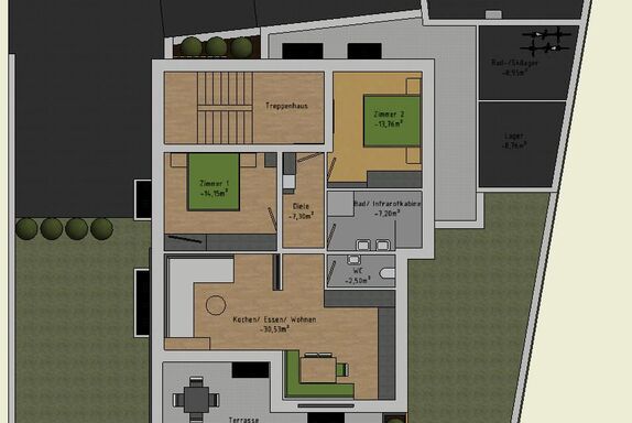 • Paare, die nach einem aktiven Tag, auf unser großzügigen Terrasse/Garten die letzten Sonnenstrahlen genießen möchten oder in der Infrarotkabine relaxen und Kraft tanken für den nächsten Tag