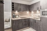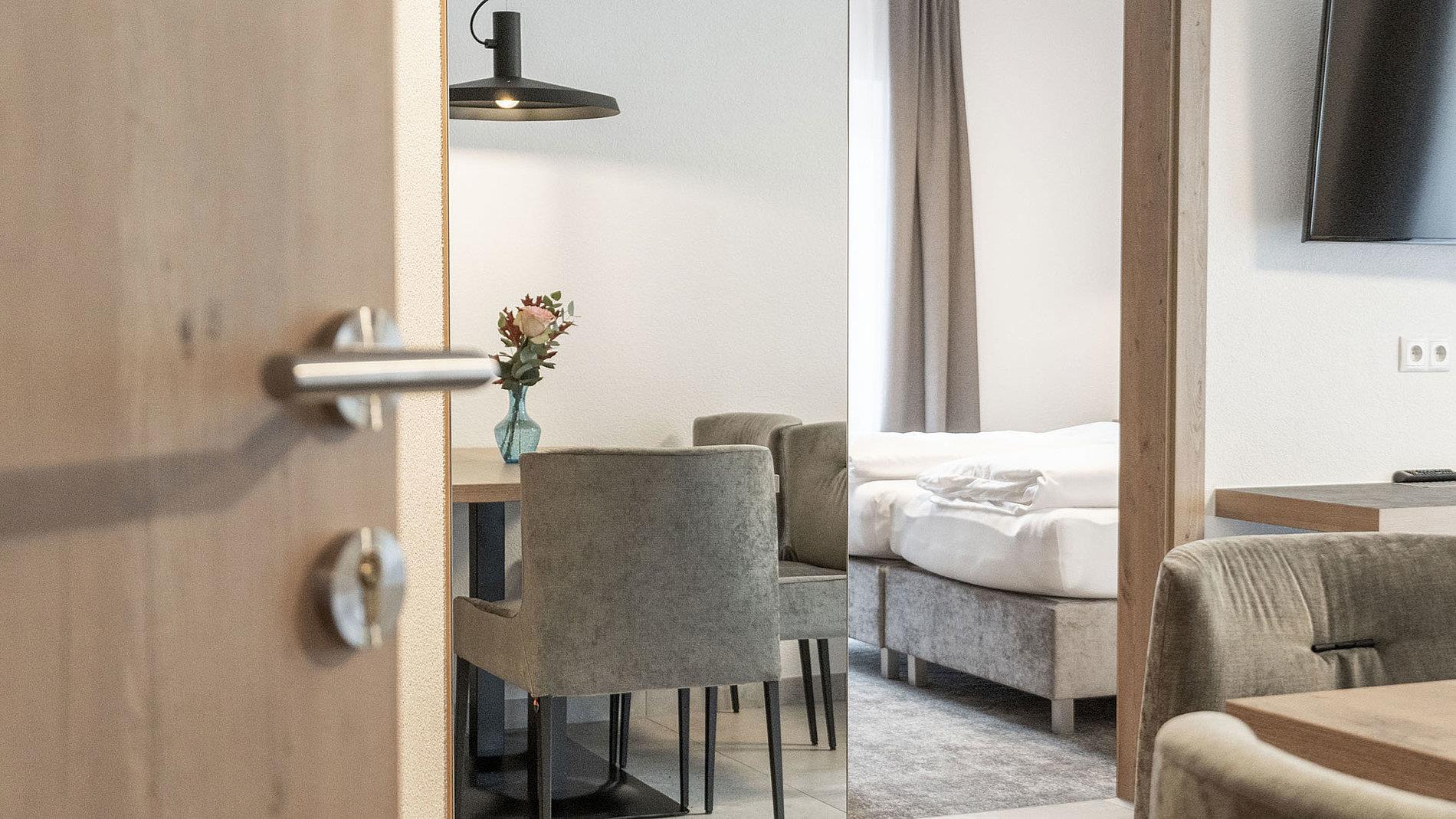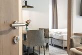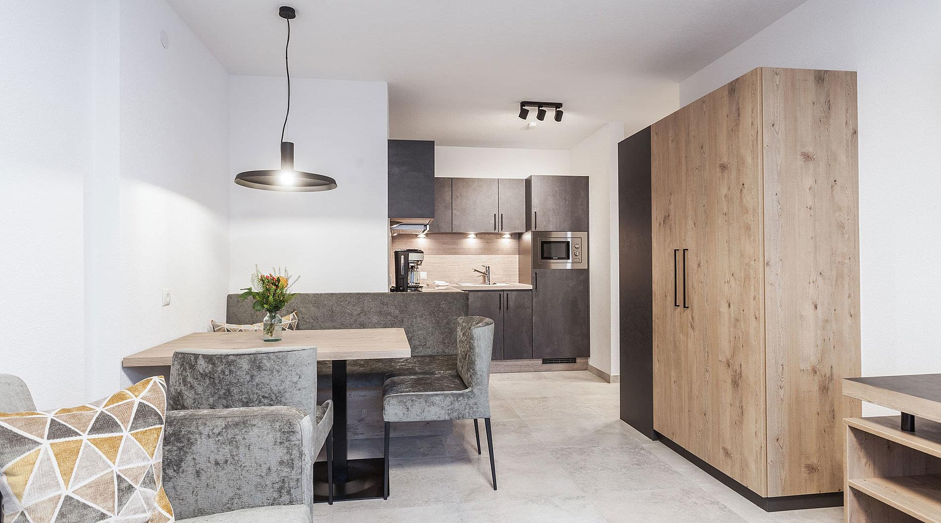 NEUES Appartement Superior ohne Balkon. Größe ca. 38 m². Ausgestattet für erholsame Tage: 1 Doppelzimmer, 1 Wohnküche (4- Cerankochfelder, Kühlschrank, Backofen-Mikrowellen-Kombination, Kaffeemaschine, Wasserkocher, uvm.) mit Essecke und Couch (Schlafgelegenheit für 2 weitere Personen), Safe, Badezimmer mit grosser Dusche, separates WC und Fön.
