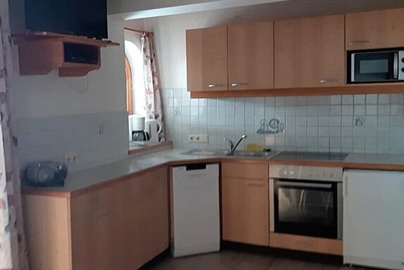 Ferienwohnung 2: ca. 105 qm, 4-6 Personen, 3 Doppelzimmer mit jeweils Dusche, WC, 2 große Balkone mit Gletscherblick, Terrasse, Wohnküche mit eingabauter Ausziehcouch, Küchenblock: E-Herd, Backofen, Mikrowelle, Geschirrspüler, Kühlschrank, Kaffeemaschine, Geschirr..., Fernseher mit SAT-Programm, Internetanschluss, gemütliche Essecke.