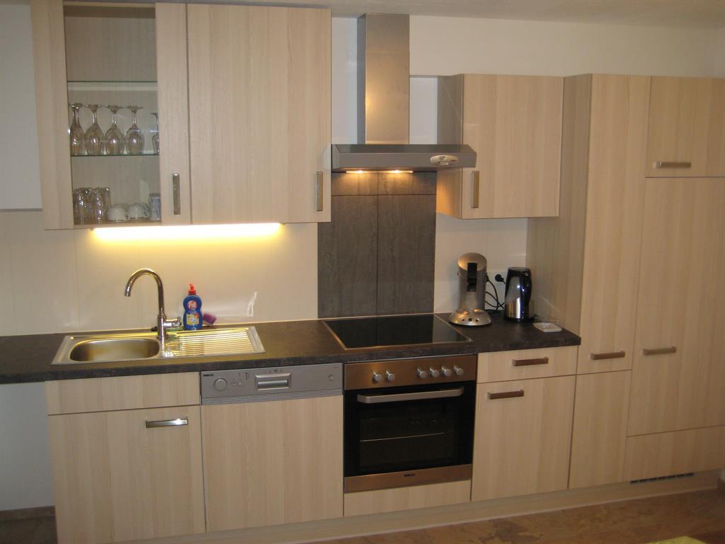 Voll ausgestattete Küche für 5 Personen, Herd mit 4 Ceran-Kochplatten und Bakcofen, Geschirrspüler, Kaffemaschine (wahlweise Filterkaffee-, Nespresso- oder Senseo-Maschine), Mikrowelle, Kühlschrank, Geschirr, Töpfe, Gläser u.v.m.