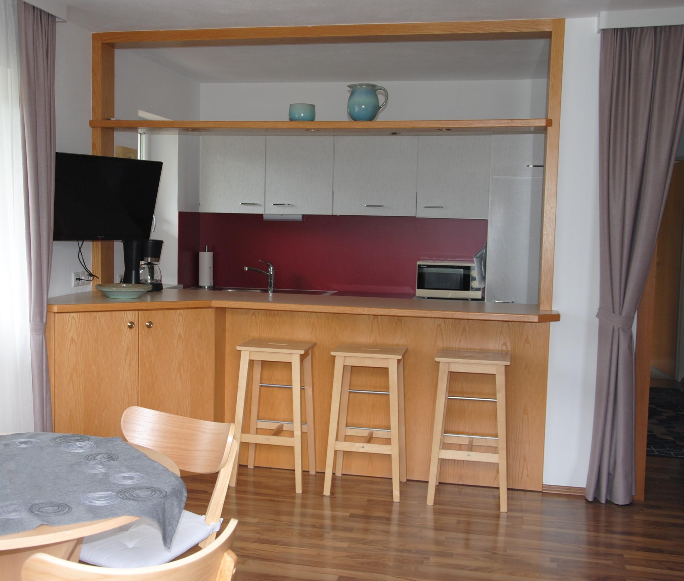 Die Ferienwohnung verfügt über eine große Sonnenterrasse und ist folgendermaßen ausgestattet: Bad/WC/Waschmaschiene SAT/TV Bettwäsche und Handtücher komplette Küchenausstattung (Spülmaschiene, Geschirr, Besteck, Kaffeemaschine, Herd mit Backrohr, Kühlschrank Parkplatz)