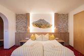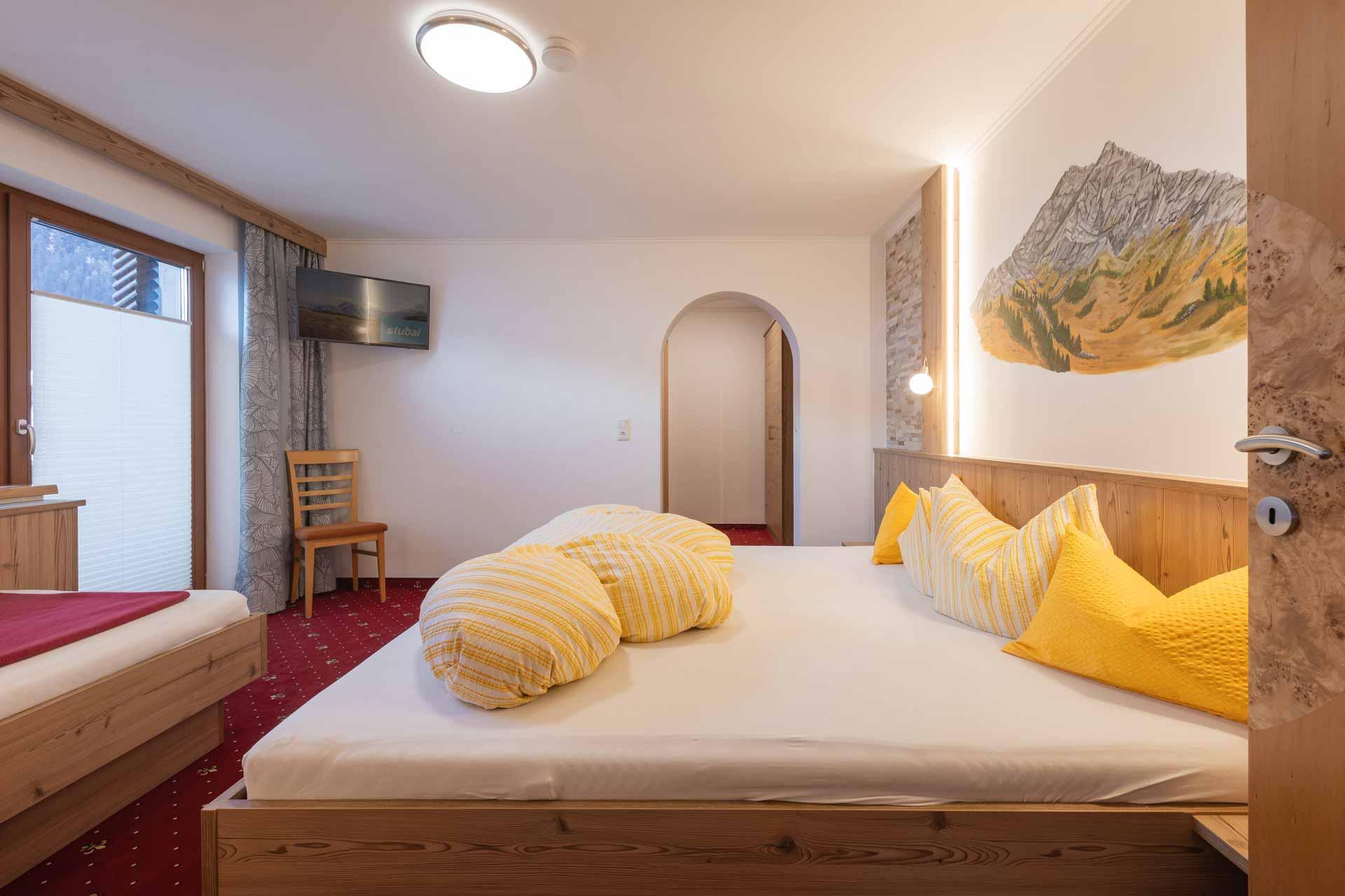 Ein Schlafzimmer mit einem Doppel- und einem Einzelbett ,Balkon,Dusche und WC,Fön,Kosmetikspiegel,Badeutensilien vom Zimmer aus begehbar.
