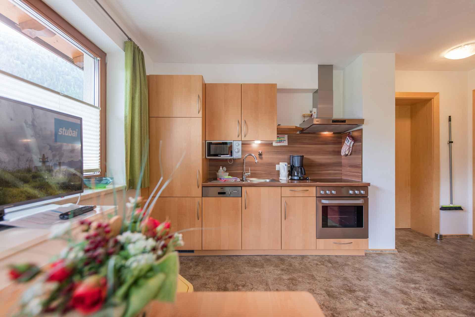 Unsere vier neuen und im modernen Tiroler Stil gehaltenen Ferienwohnungen bieten Ihnen viel Raum für eine erholsame Urlaubszeit. Jede Ferienwohnung in unserem Haus Rosmarie bietet Ihnen eine voll ausgestattete Wohnküche mit gemütlicher Sitzecke, große Schlafzimmer und Badezimmer mit Dusche oder Badewanne. Alle Ferienwohnungen bieten Ihnen einen herrlich sonnigen Balkon mit Blick auf die Stubaier Alpen.