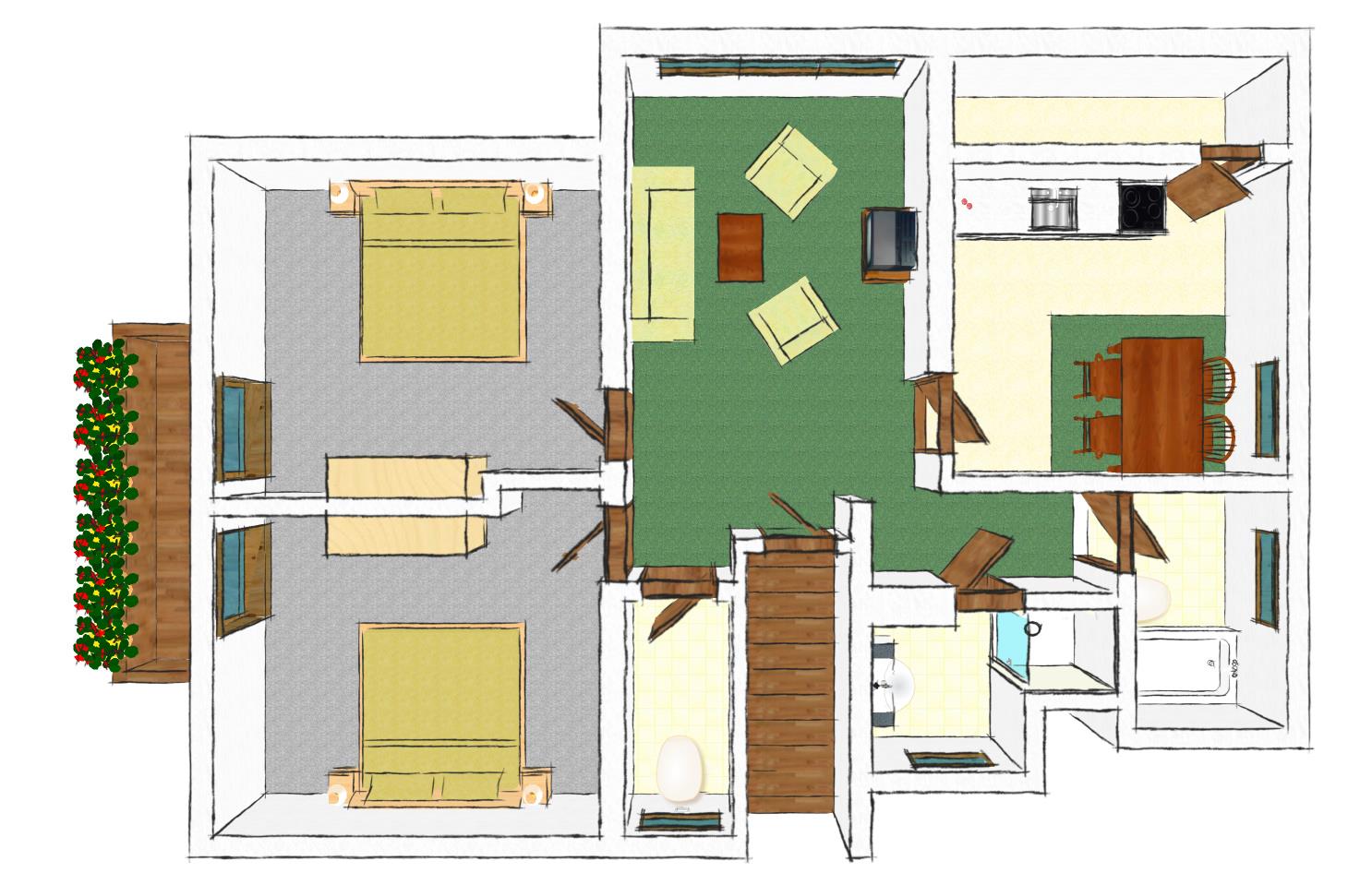 Apartment – Nichtraucher ca.68 m2. Unser freundliches, helles mit viel Holz eingerichtetes Apartment bietet großzügigen Lebensraum und verfügt über alle Annehmlichkeiten für einen ungezwungenen Urlaub. Ideal für 2-4 Personen. 2 Schlafzimmer mit Telefon, Safe und Südbalkon, Wohnraum mit gemütlicher Sitzecke und Panoramablick, Flachbildschirm, Sat-TV mit Stubai-Info-Kanal und Radio, kostenloses W-LAN, komplett ausgestattete Küche mit Ceranfeld, Mikrowelle, Backofen, Geschirrspüler, Kühlschrank, Gefrierschrank und Essecke; 2 Bäder : 1 Bad mit Dusche und separates WC sowie 1 Bad mit Badewanne und WC. Fön, Kosmetikspiegel sowie Pflegeprodukte. Bettwäsche, Hand- und Geschirrtücher werden bereitgestellt! Ideal für ° Paare, die es lieben, großzügig zu wohnen ° Familien, die sich für Ihre Kinder ein eigenes Kinderzimmer wünschen ° Alle, die eine atemberaubende Aussicht genießen möchten ° Paare, die nach einem aktiven Tag, auf dem Balkon die letzten Sonnenstrahlen genießen möchten ° Befreundete Ehepaare, die abends noch gemütlich zusammensitzen möchten