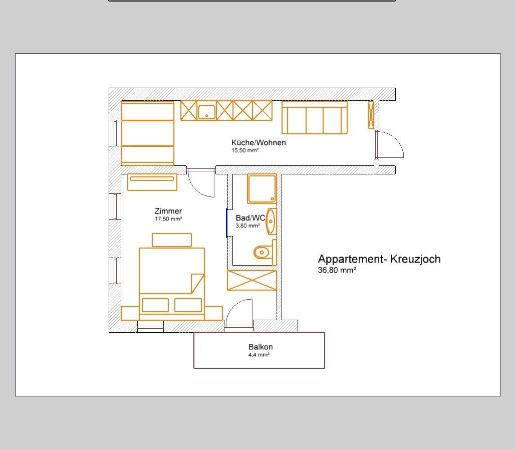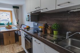 Das Apartment Kreuzjoch befindet sich im ersten Stock und verfügt über einen Balkon von wo Sie eine sensationelle Aussicht auf die umliegende Bergwelt haben.