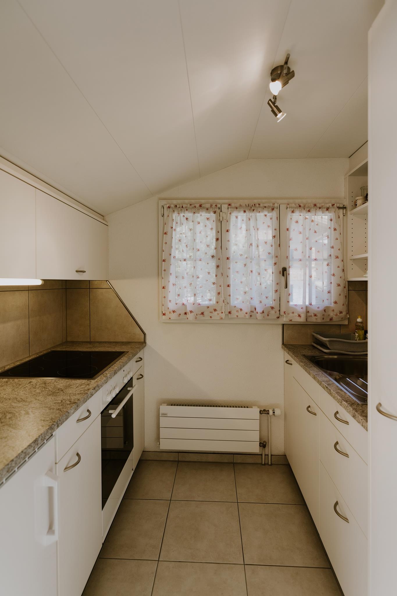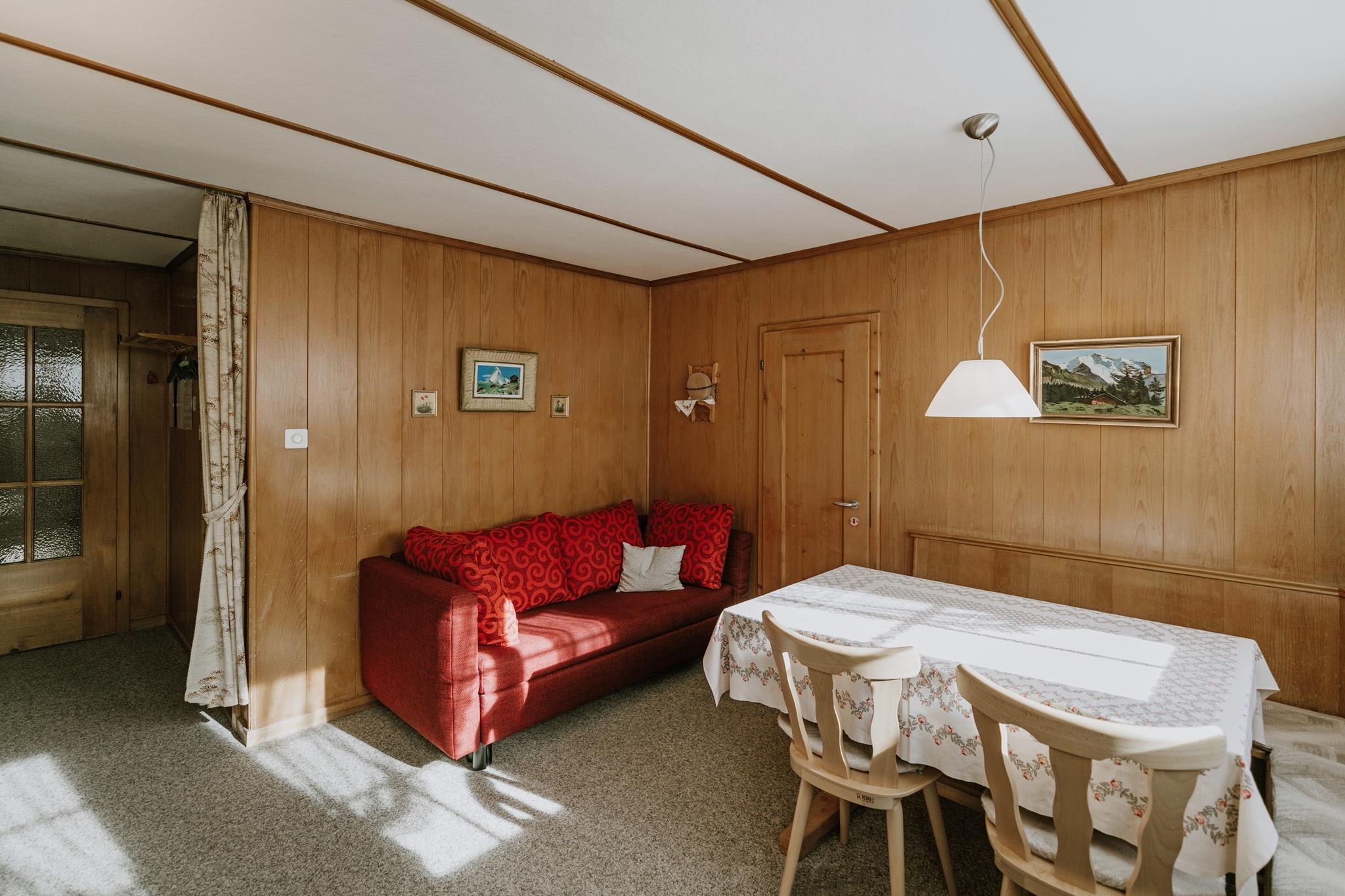 Gemütliche 2-Zimmerwohnung (49 m2) im Dachstock. Schlafzimmer mit Doppelbett, freundliches Wohnzimmer. Neue Küche. Neue Dusche/WC, Balkon mit Blick auf die Berge, TV, Parkplatz. Haustiere sind nicht erlaubt.