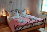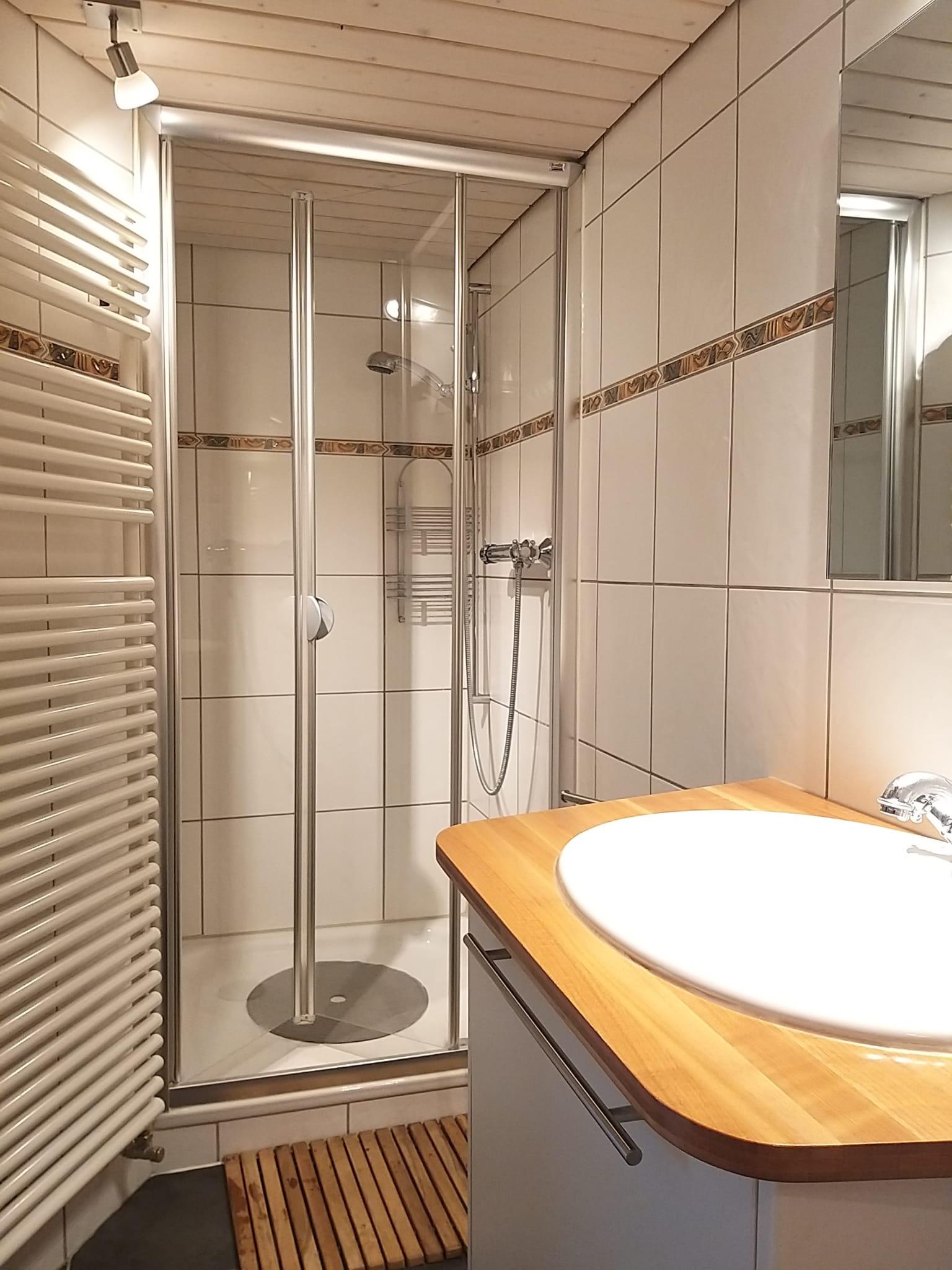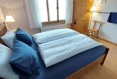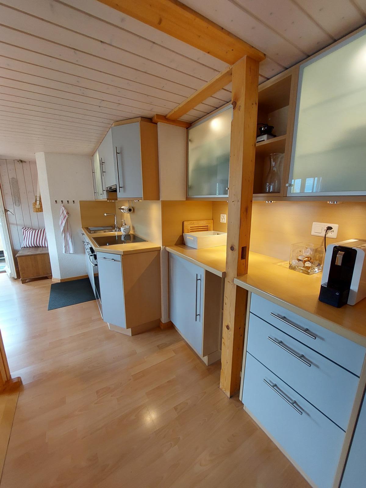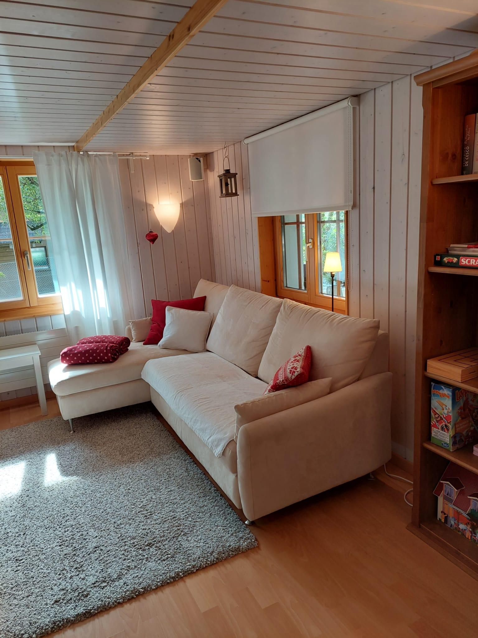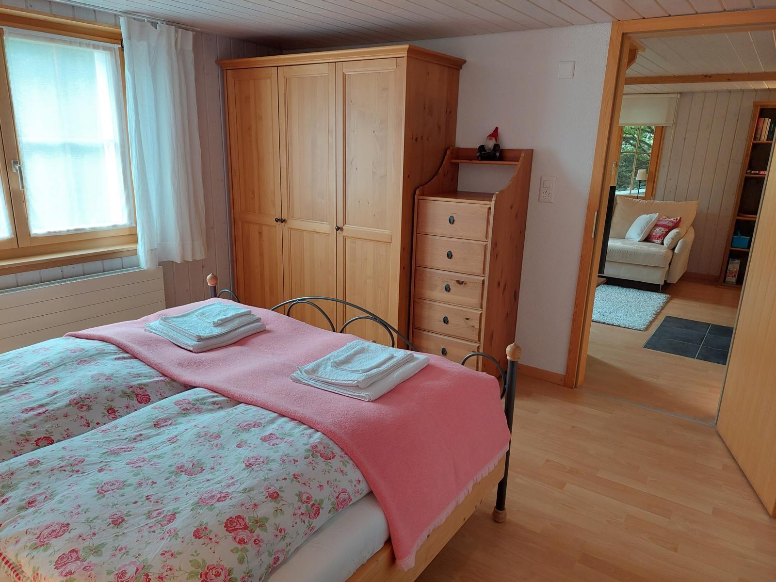 Schöne 3-Zimmer-Maisonette Wohnung (65m2) im Parterre und 1. Stock in einem Chalet mit 2 Wohnungen. Das Chalet liegt an erhöhter und ruhiger Lage unweit vom Dorfzentrum entfernt. Der Balkon mit schöner Bergsicht und der idyllische Garten laden zum verweilen ein. Eingangsbereich mit Garderobe und Schuhablage. 1 Schlafzimmer mit Doppelbett (160x200cm) im Partette, 1 Schlafzimmer mit Doppelbett (160x200m) im ersten Stock. Wohnzimmer mit Sitzecke, Kabel-TV/Radio. Gratis WiFi. 1 Badezimmer mit Dusche/WC. Gut ausgestattete Wohnküche mit separatem TV, Glaskeramikkochfeld, Backofen, Kühlschrank inkl. Gefrierfach, Filter-Kaffeemaschine, Racelette- und Fondueset, Wasserkocher, Toaster. Die Wohnung verfügt über eine Zentralheizung. Zusätzlich gibt es im Wohnzimmer einen Kaminofen. Die Parkplätze befinden sich direkt beim Haus. Haustiere sind nicht erlaubt. Nichtraucher Wohnung. Wie oftmals in älteren Chalets üblich, ist die Raumhöhe niedriger als gewohnt (ca. 2.00 Meter). Bettwäsche, Frotteewäsche sowie Küchentücher sind vorhanden.