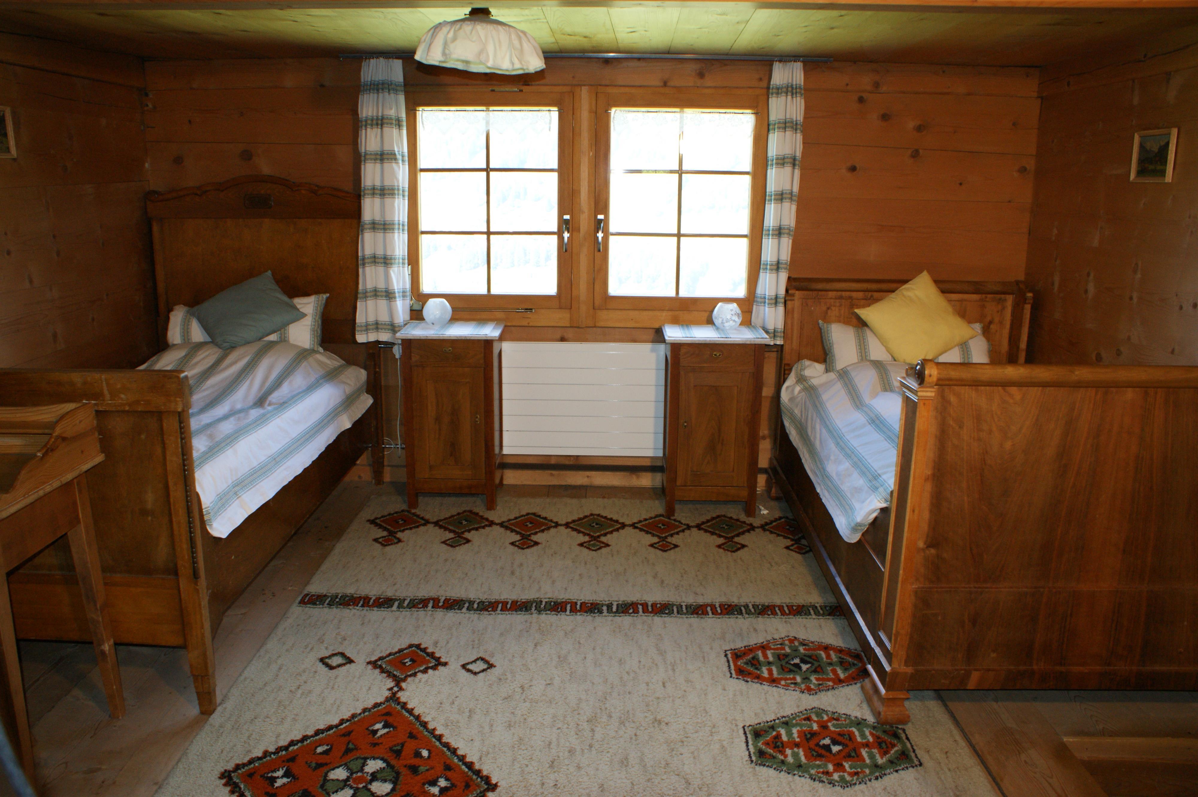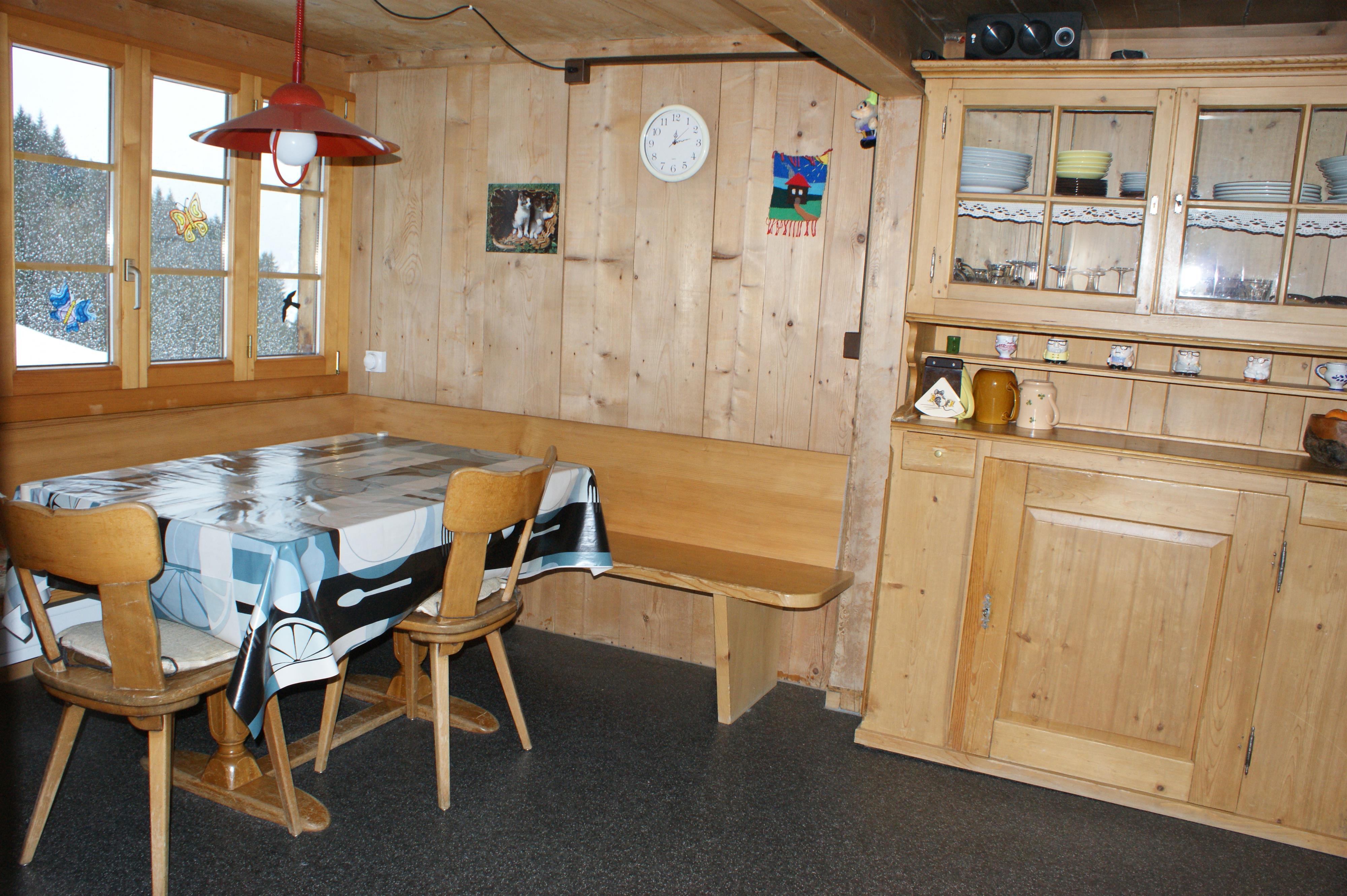 Gemütliches Bauernhaus an sonniger Lage, abseits der Strasse (6 Min Fussmarsch). Wunderbare Aussicht auf die Berge, mitten im Wandergebiet. Gemütliche Stube mit Schwedenofen und TV. Grosse Küche mit Holzherd und neuer Einbauküche. Bad mit Dusche und WC. Neu renoviertes Schlafzimmer. Obergeschoss mit 2 rustikalen Betten und Zimmer mit Kajütenbetten. Umschwung ums Haus zum Spielen. Sitzplatz mit Gartenmöbeln. Holzheizung. Nichtraucherwohnung. Haustiere willkommen.