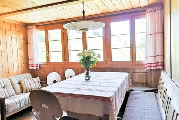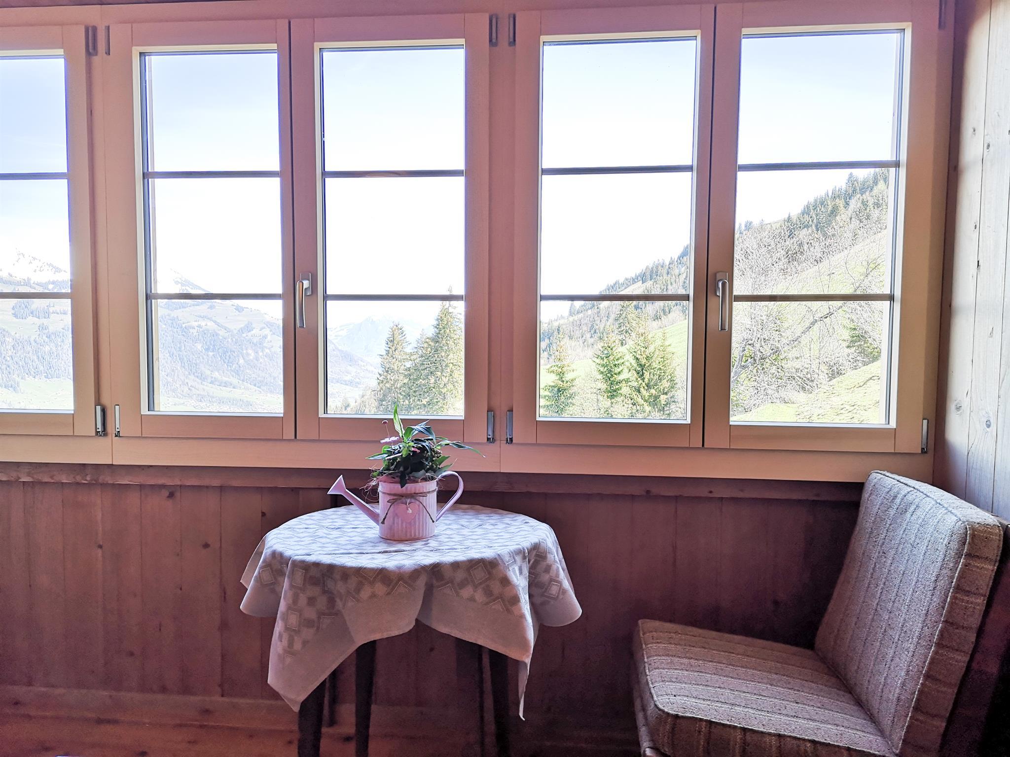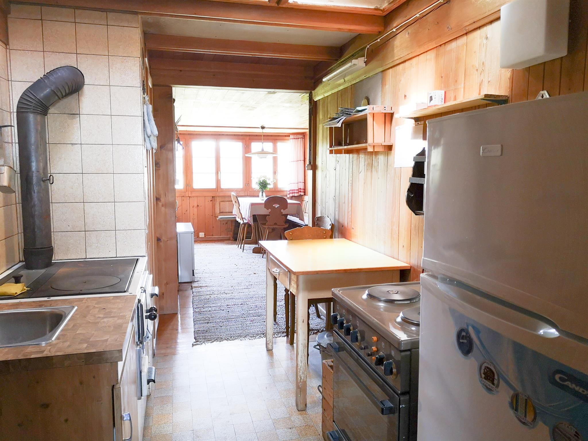 5-Zimmerwohung im 2. Stock (60m2) in freistehendem Bauernhaus ausserhalb des Dorfes Frutigen (15 Autominuten entfernt) auf 1300 m.ü.M. Prächtige Sicht auf die Berge und das Tal. 4 Schlafzimmer (2 Doppelzimmer und 2 kleine Einzelzimmer), zusätzlich ist ein Kinderbett vorhanden (bis 3 Jahre). Dusche/WC, helle Wohnküche, Balkon. Haustiere sind willkommen. Nichtraucherwohnung.