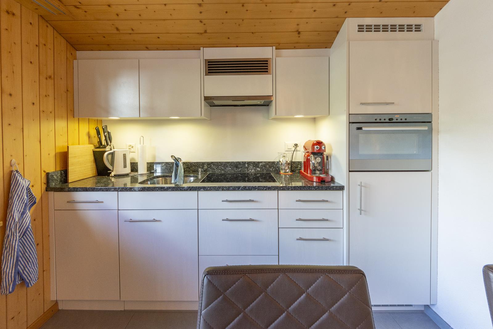 Moderne, voll ausgerüstete Küche mit Backofen, Geschirrspüler und Kaffeemaschine (Nespresso und Bialetti). 1 Schlafzimmer mit einem Doppelbett (160x200), zusätzlich 2 Matratzen (90x200) zum flexiblen Gebrauch. Großzügiges Wohnzimmer mit ausziehbarem Ecksofa, Schlafgelegenheit für 2 Kinder oder 1 Erwachsene, TV (AppleTV), WLAN.