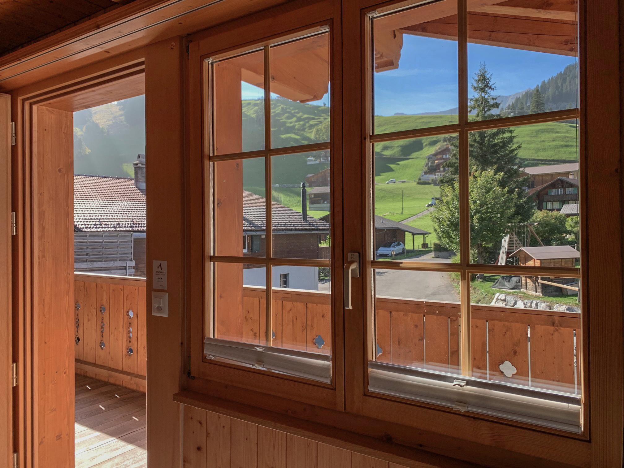 Gemütliche 2-Zimmerwohnung im 1. Stock (60 m2) in einem Chalet mit 3 Wohnungen an top-Lage: Entfernung 200 m Talstation Chuenisbärgli.