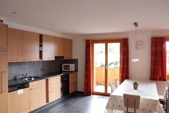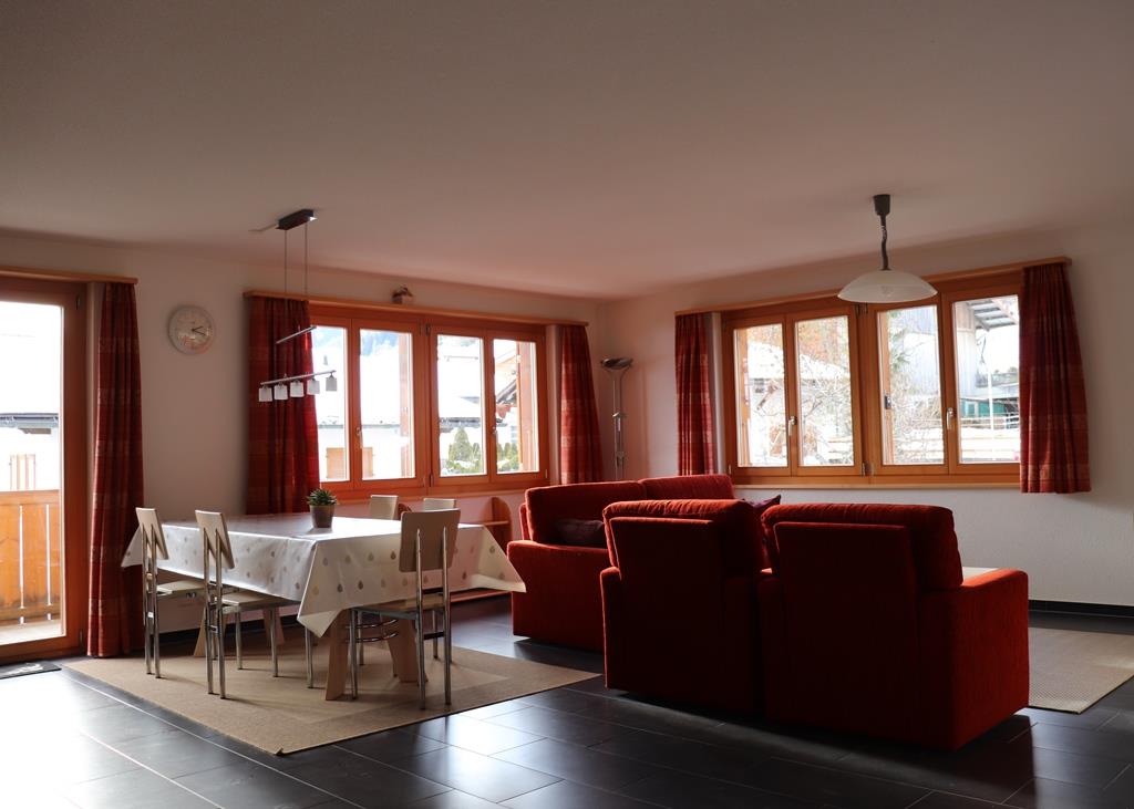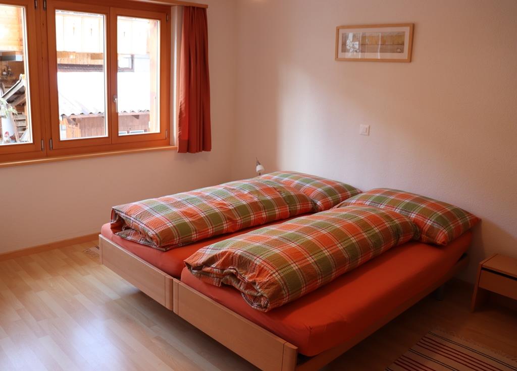 Neue, moderne 3.5 Zimmerwohnung im 1. Stock eines Mehrfamilien-Chalets im Ausserschwand für bis zu 6 Personen (zwei Schlafzimmer mit je 2 Betten und im Wohnraum ein Bettsofa für 2Personen). Ein Babybett kann für CHF 50 gemietet werden. Sonniger, grosser Balkon mit schöner Aussicht. Grosses Wohnzimmer mit Kabel-TV/Radio und Internet W Lan, Einbauküche, komplett eingerichtet inkl. Geschirrspüler., Nespresso Kaffeemaschine, 1 Einstellhallen (Garagen-Parkplatz) ist im Preis inbegriffen. Ein 2. Parkplatz kann dazu gemietet werden. Nichtraucherwohnung. Haustiere sind nicht erlaubt. Die Wohnung liegt an ruhiger, sonniger Lage, ca. 3 Fahrminuten vom Zentrum entfernt, 2 Gehminuten zu Busstation mit Verbindung zu allen Seilbahnstationen.