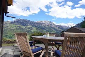 Das Haus, zu dem auch ein gemeinschaftlicher Pool gehört, hat durch die große Glasfensterfront im Wohnzimmer einen fantastischen Blick auf die Bergwelt und besteht aus einem großzügigen Wohn- und Essraum mit Küchenzeile, aus drei Schlafzimmern, davon das erste mit einem Doppelbett mit Blick auf die Berge, eines mit einem Stockbett und das dritte besteht aus einem Französischen Bett und einem Einzelbett (ein Zustellbett ist möglich). Außerdem verfügt das Haus über einen Wasch- und Abstellraum und einem Bad (Dusche, Toilette, Waschbecken). Zum Haus gehört, in Richtung Südost, eine großzügige Terrasse und eine schöne Liegewiese. Nicht nur vom Wohnraum aus, sondern auch von der Terrasse/Liegewiese, haben Sie einen fantastischen Ausblick auf die Berner Bergwelt. Unser Haus ist ein Nichtraucherhaus und auch auf dem gesamten Grundstück darf nicht geraucht werden. Zum Haus selber kommen sie über 100 Treppenstufen, da es ganz oben auf Lohmatte liegt. Sie werden mit traumhaftem Blick und Ruhe belohnt.
