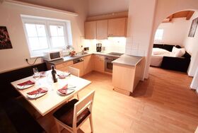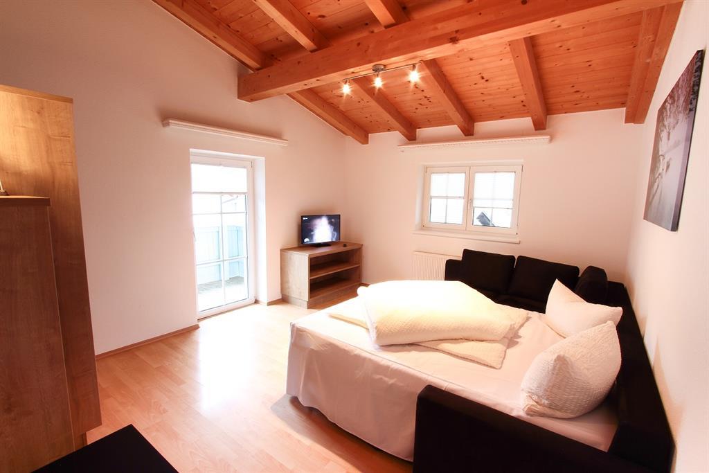 Unsere gemütlichen Appartements (ca. 73 m²) sind mit 1 Doppelzimmer, 1 Einzelzimmer, einer großen vollausgestatteten Küche (Cerankochfeld, Backrohr, Kühlschrank/Tiefkühlschrank, Wasserkocher, Filter-Kaffeemaschine, Mikrowelle uvm.) gemütliches Wohnzimmer mit Schlafmöglichkeit für 2 weitere Personen, 1 Badezimmer mit Dusche/WC, Sat-TV und möbliertem Balkon bzw. möblierter Terrasse ausgestattet.