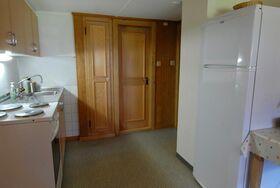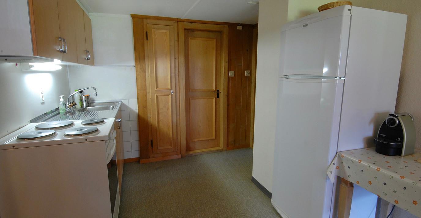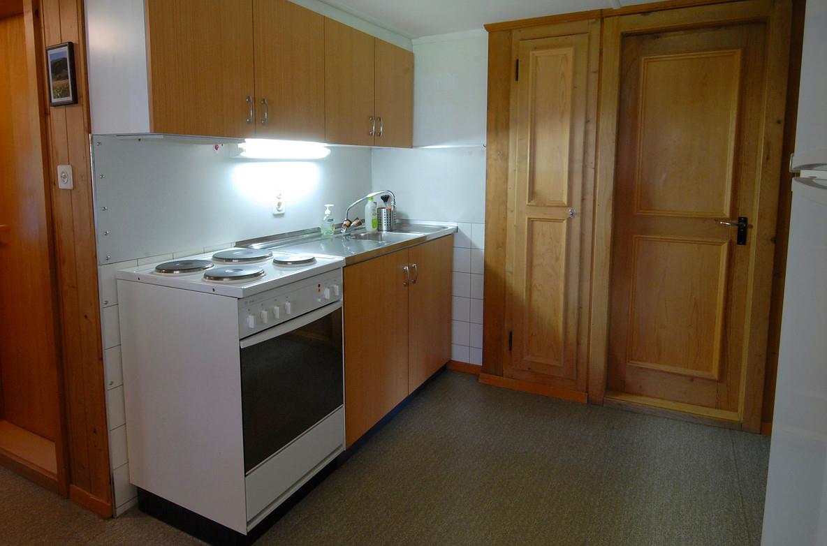 Die geräumige Wohnküche ist mit allem Nötigen ausgerüstet. Kochherd, Backofen, grosser Kühlschrank mit grossem Gefrierfach. Eine Nespresso Kapsel Kaffeemaschine, ein ital.Kaffeekocher für gemahlenen Bohnenkaffee, Fondue und Racelette Geschirr sind vorhanden.