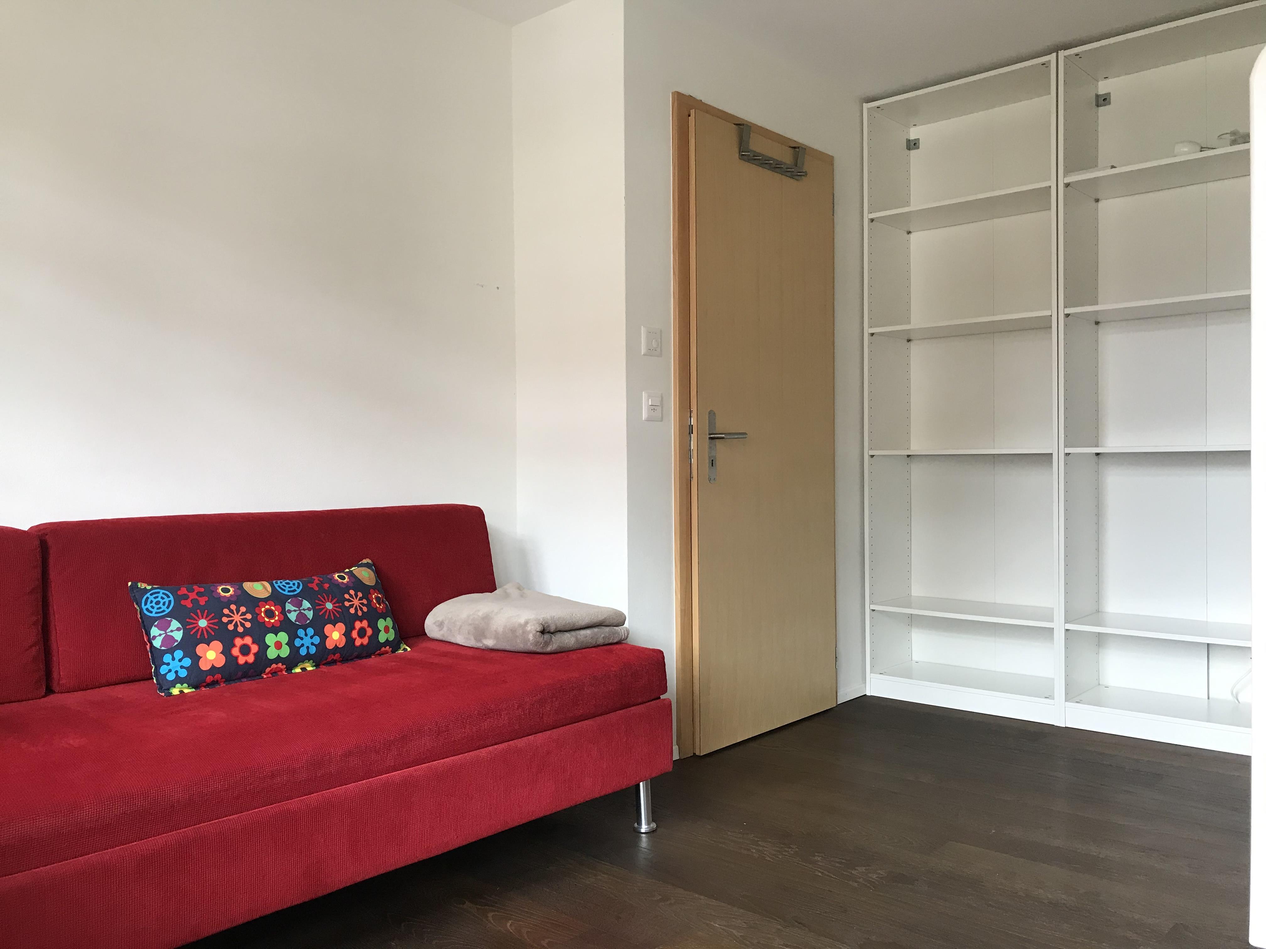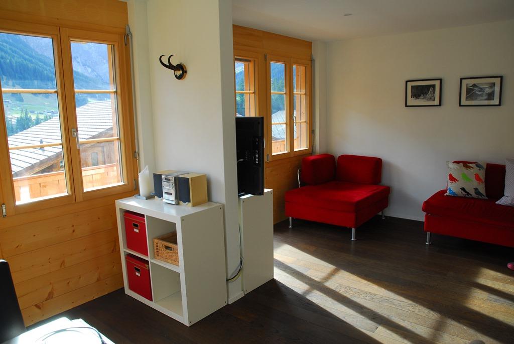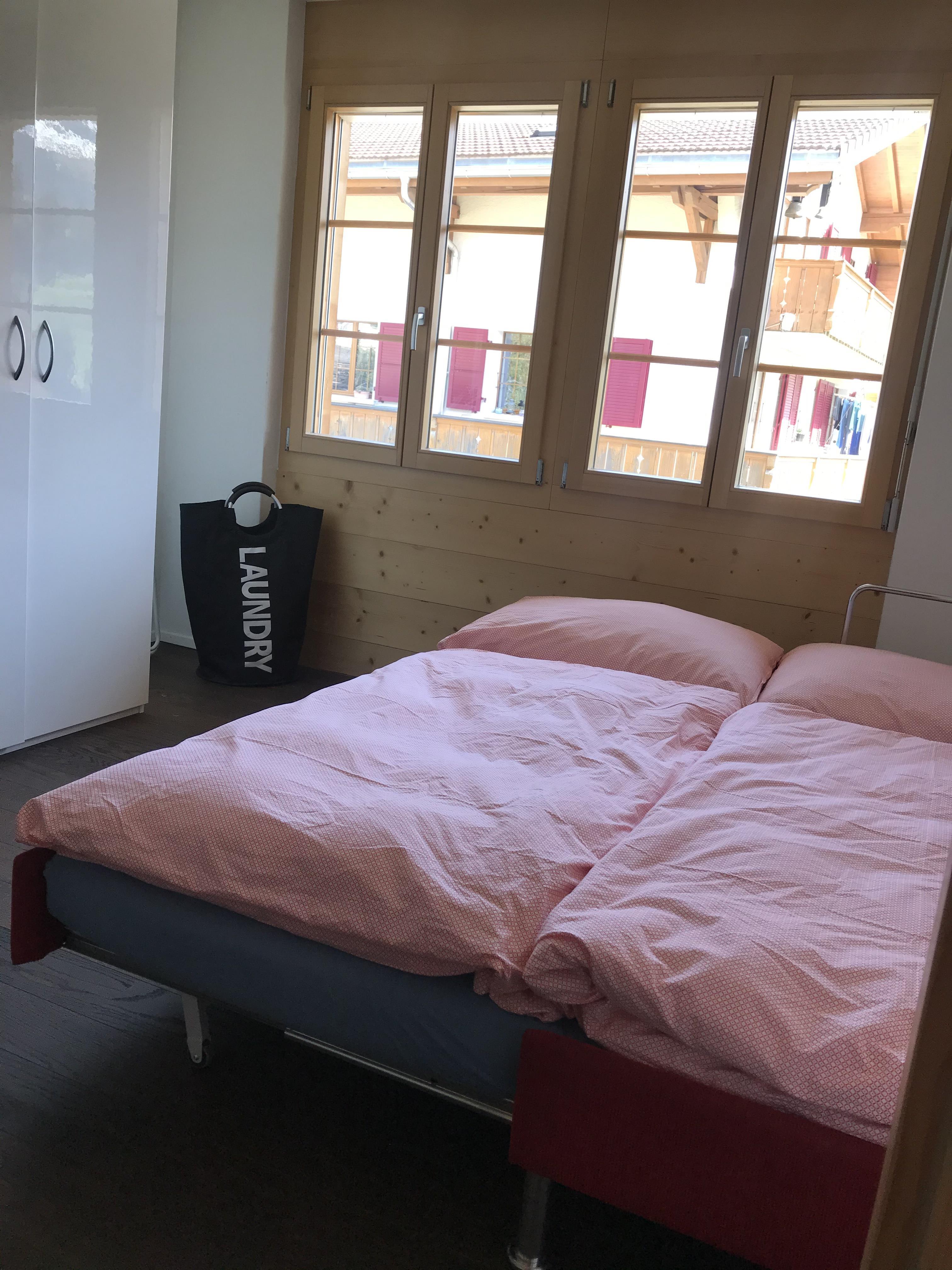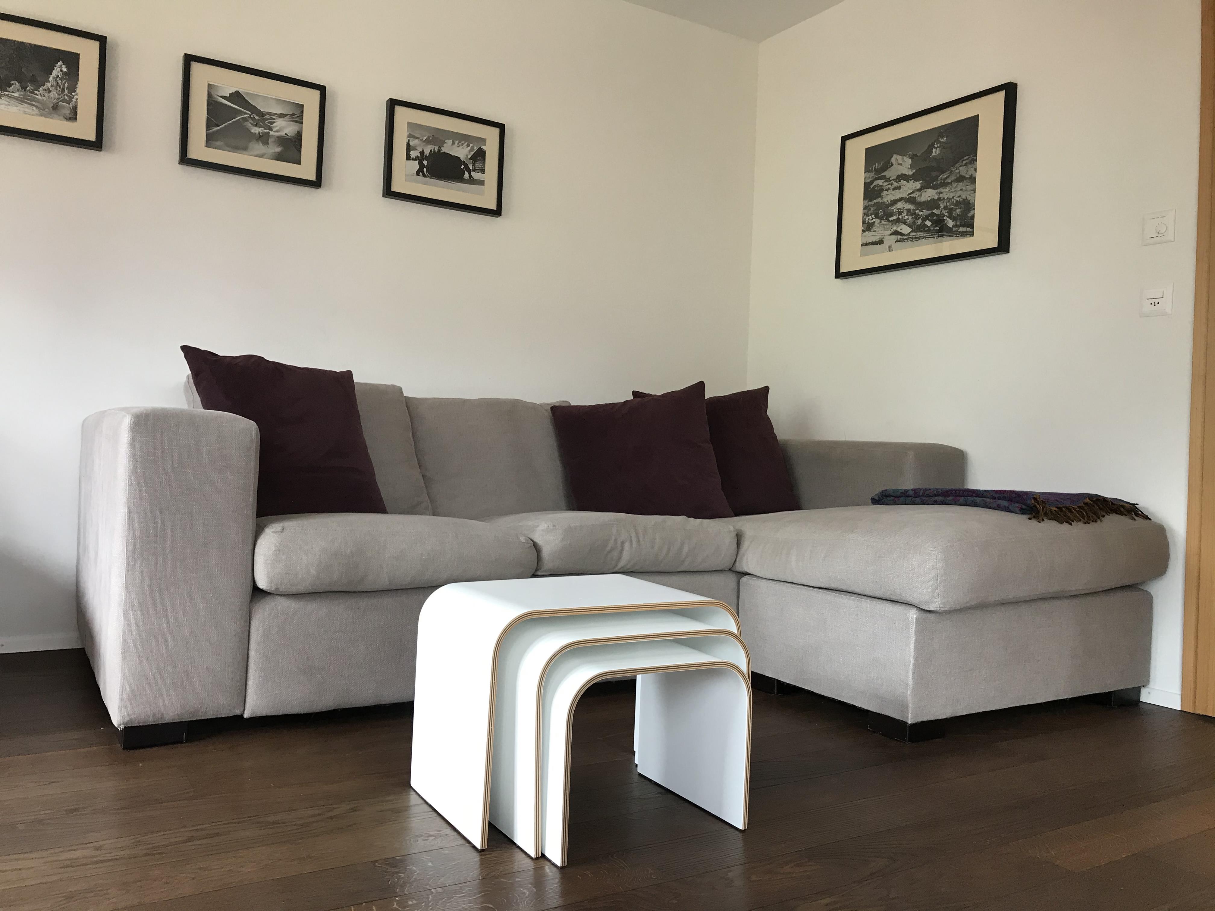 Schöne neue, modern eingerichtete 2.5-Zimmerwohnung im 1. Stock (62 m2) nähe Dorfzentrum. Die Wohnung ist perfekt für 4 Personen, bietet jedoch bei Bedarf noch zusätzlich 3 weitere Schlafplätze (Sofa und Schlafsessel) im Wohnzimmer.