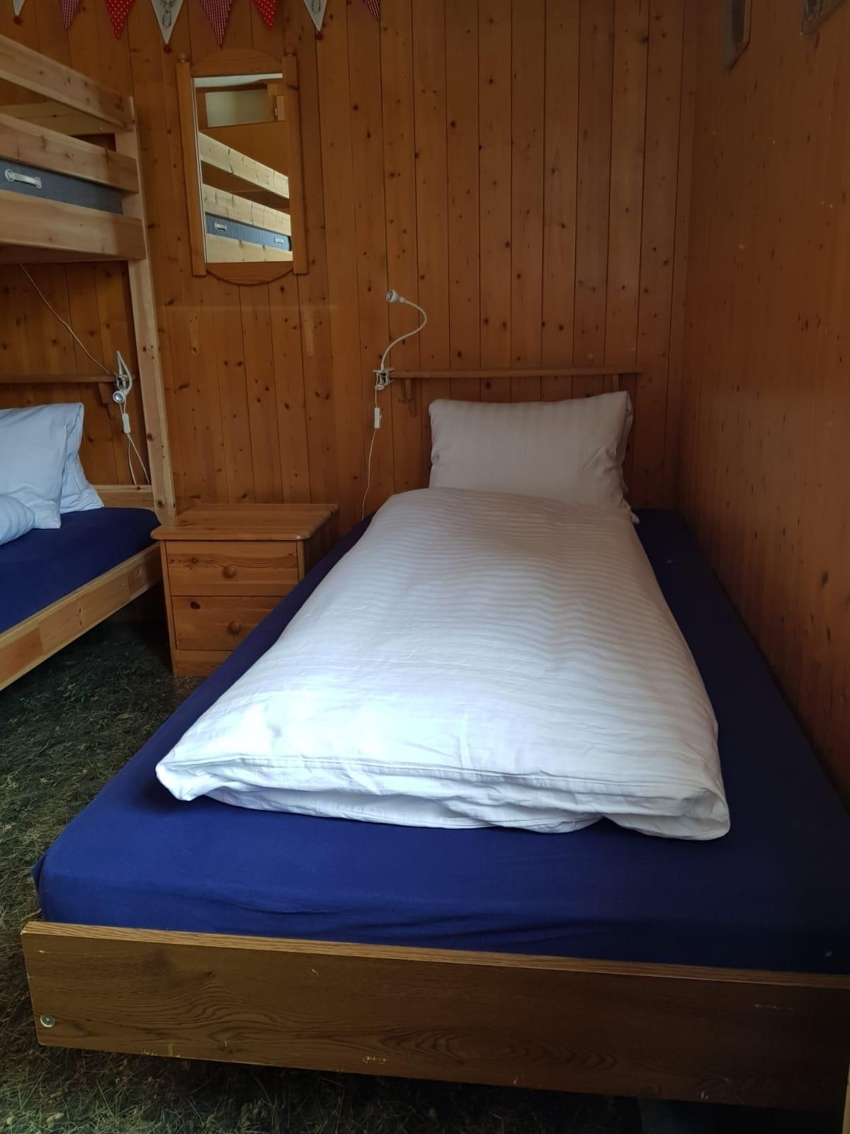 Ein Schlafzimmer mit Doppelbett, ein Schlafzimmer mit Kajüten Bett und einem Einzelbett, ein weiteres Schlafzimmer mit einem Einzelbett, ein Bettsofa im Wohn-Esszimmer für eine Person. Dusche/WC. Haustiere nicht erlaubt. Nichtraucherwohnung.