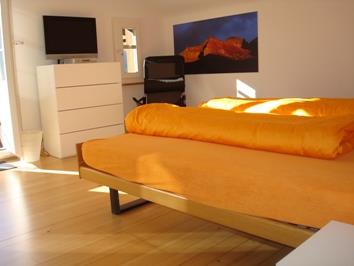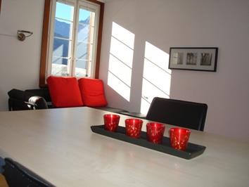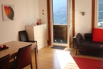 Neu renovierte, gemütliche 3-Zimmer-Dachwohnung (60m2) im Chalet Thüler für max. 5 Personen. Südbalkon mit traumhafter Panorama-Aussicht.