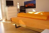 Gemütliches Wohnzimmer mit Bettsofa. Neue, komplett eingerichtete Küche mit Geschirrspühler, Nespresso-Kaffeemaschine, Raclette- und Fondue-Set etc.