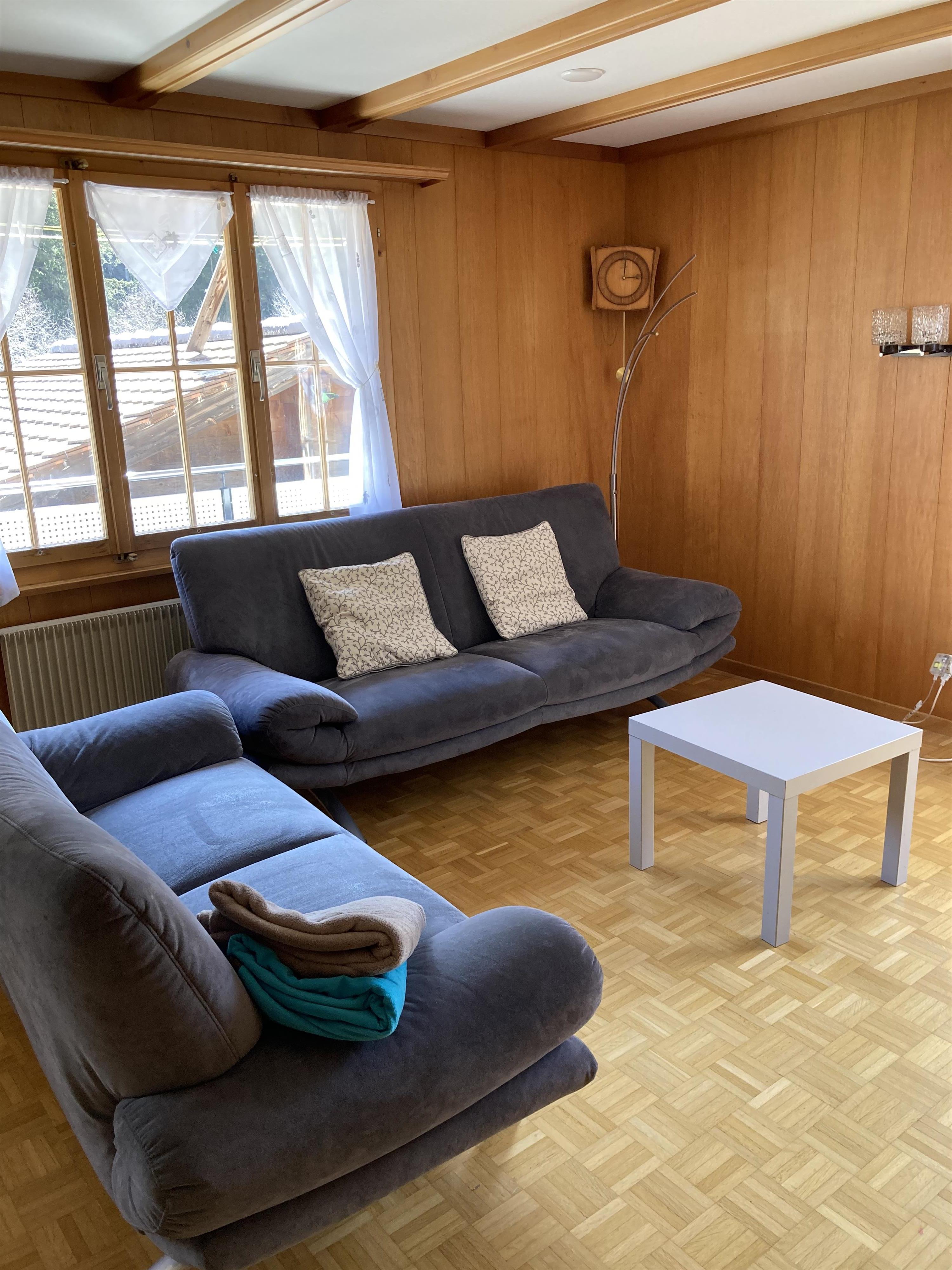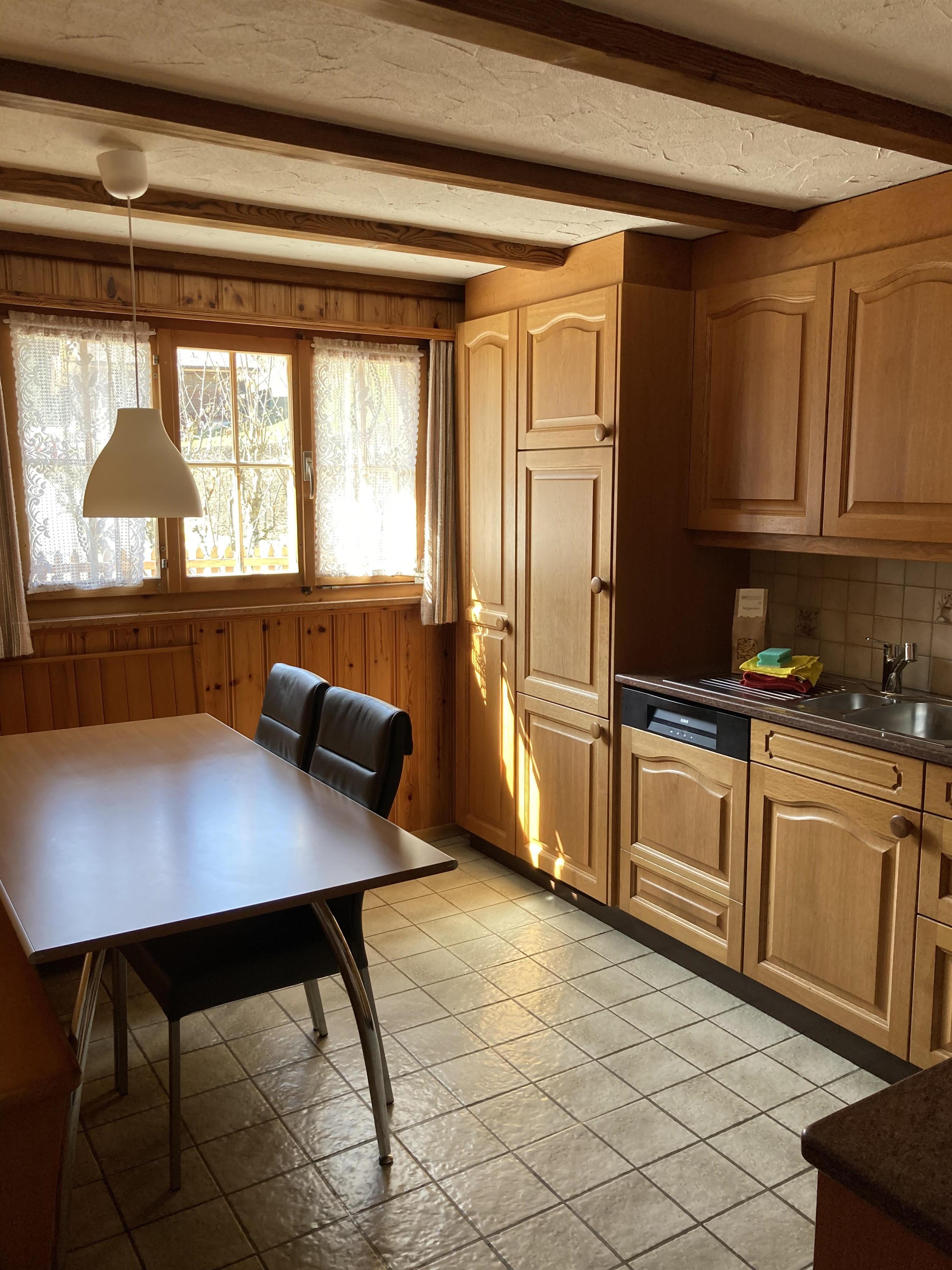 3-Zimmerwohnung in einem Chalet an Top Lage. Wohnzimmer mit Sitzecke, TV, Radio, WLAN. Gut eingerichtete Küche mit Backofen, Geschirrspüler und Kaffeemaschine. 1 Schlafzimmer mit einem Doppelbett,(160/200) 1 Schlafzimmer mit 2 Einzelbetten 2 Betten stehen im Wohnzimmer. 1 kleines Badezimmer mit Badewanne/WC, wunderschöne Terrasse. Das Haus liegt direkt an der Talabfahrt, 200 m bis Sillerenbahn 100 m bis Bushaltestelle. Zu Fuss erreichen Sie das Dorf in ca. 15 Minuten. Parkplatz vor dem Haus.