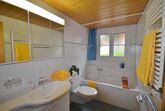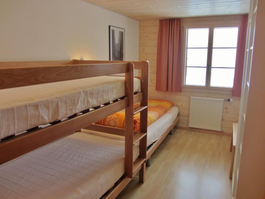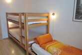 3-Zimmerwohnung im Dachgeschoss (62m2). Haus mit 3 Wohnungen. 2 Schlafzimmer. Eines mit 1 Doppelbett und Bettsofa, eines mit 2 Einzelbetten. Kinderbett vorhanden. Dusche/WC, TV, CD-Player, Internet, Balkon, Garten, Grill, Spielplatz, Parkplatz. Haustiere sind nicht erlaubt.