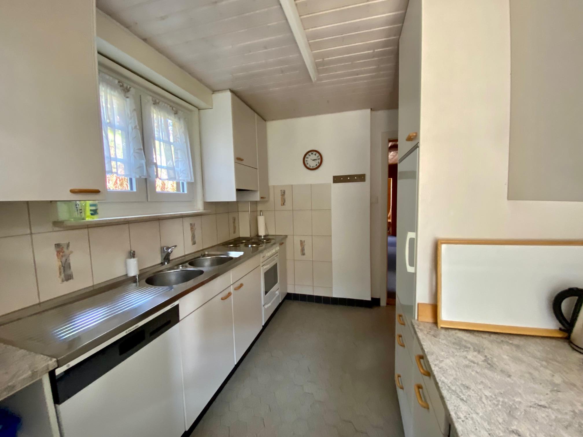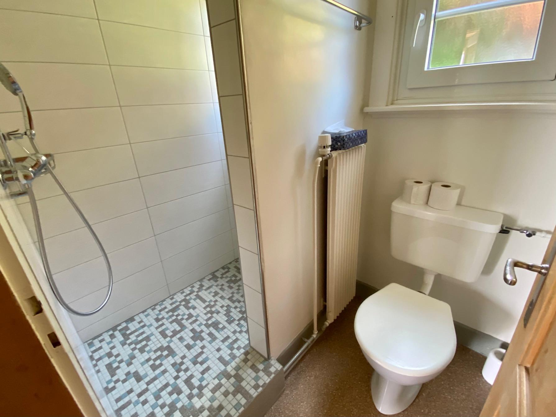 Schöne 3-Zimmerwohnung im Erdgeschoss (80m2) in einem Chalet mit 3 Wohnungen an zentraler Lage. Küche mit Backofen, Abwaschmaschine und Kaffekanne (Bialetti). 2 Schlafzimmer mit Doppelbett und einem ausziehbaren Sofa im Wohnzimmer (Total 6 Betten), Badezimmer mit Dusche. Balkon mit schöner Bergsicht und Gartenterrasse.