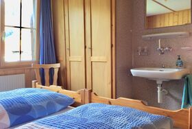 Komfortable 4-Zimmerwohnung (68m2). fortlaufende Anpassung der nötigen Einrichtungen und der Möbelierung. Die Ferienwohnung liegt im 1. Stock. Das Chalet Bärgrose hat zwei Wohnungen. Die FW umfasst, Wohnzimmer, 2 Schlafzimmer mit je 2 Einzelbetten, 1 Schlafzimmer mit 1 Einzelbett bei Bedarf mit 1 Kinderbett oder 1 Gr. Zusatzbett. Eine Moderne Küche, Kühlschrank mit Tiefgefrier-fach, Elektr. 4 Pl. Keramikkochfeld, Geschirrspühlmaschine, Mikrowelle, Wasserkocher, Filterkaffeemaschine etc. Bad/Dusche/WC, TV, Radio, DVD Player, Wilan Internet, Balkon, Terrasse. Haustiere sind erlaubt.