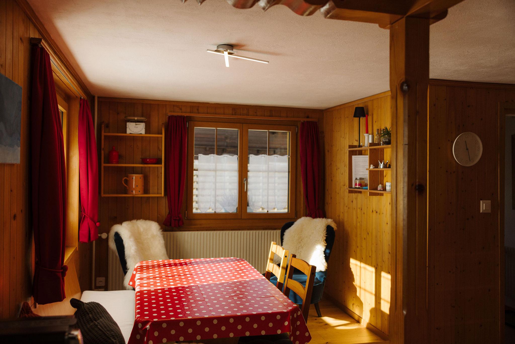 Ruhig gelegene 3-Zimmerwohnung im Parterre. 1. Schlafzimmer mit einem französischem Bett (2 Matratzen) sowie 1 kleines Schlafzimmer (Perfekt für 3 Personen). Ess- und Wohnbereich, Dusche/WC, TV inkl. Radio, Gartensitzplatz zur Mitbenutzung und Parkplatz für 1 Auto. Nichtraucherwohnung auch im Aussenbereich nicht erwünscht, Haustiere sind nicht erlaubt.