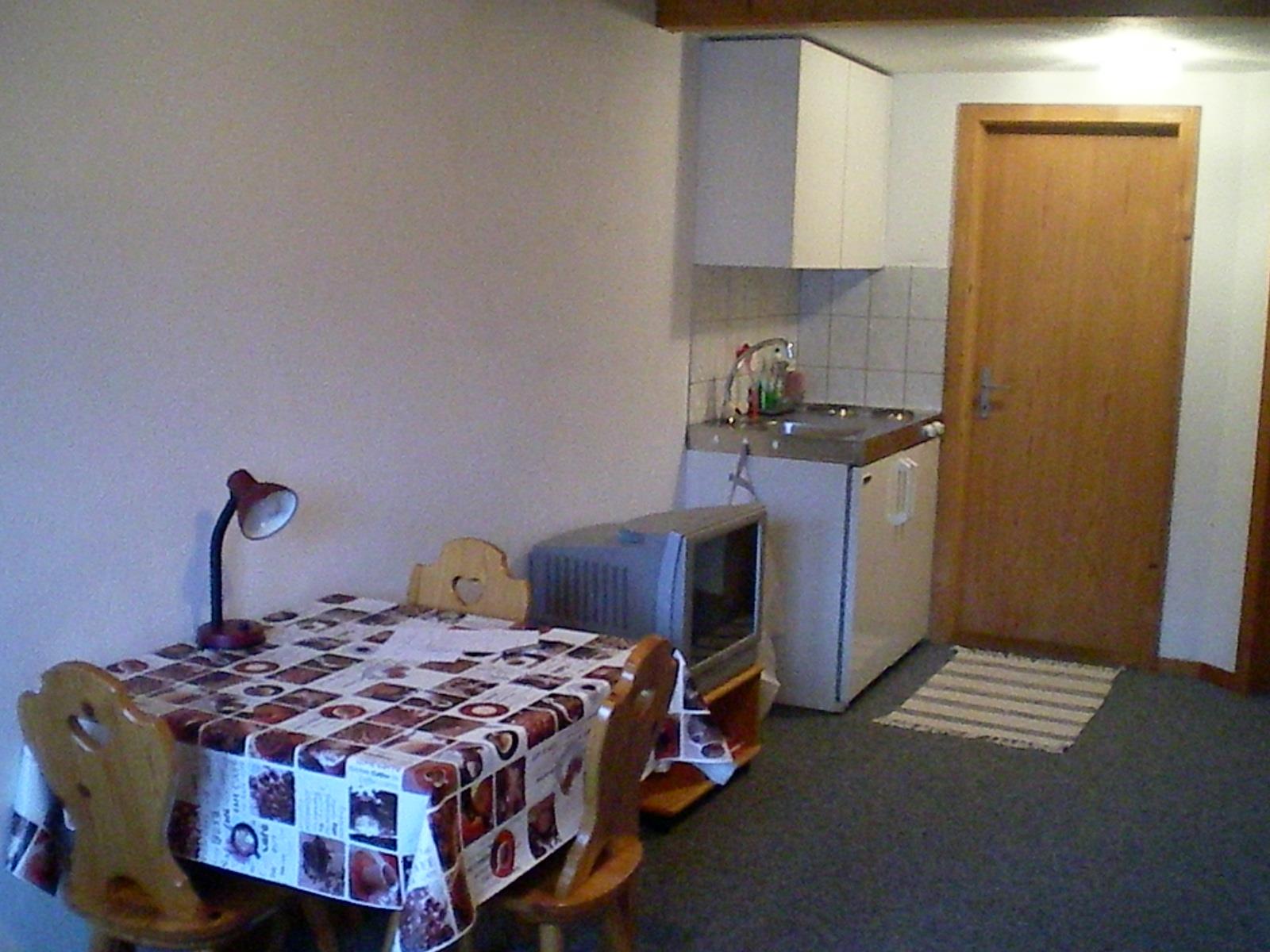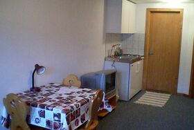 1-Zimmer-Studio (20 m2) im Parterre eines Mehrfamilien-Chalets an ruhiger Lage. Ein Schlafzimmer mit Dusche/WC und Küche. TV/Radio, Terrasse mit Sitzgelegenheit, Parkplatz. Haustiere nicht erlaubt, Nichtraucher-Wohnung.