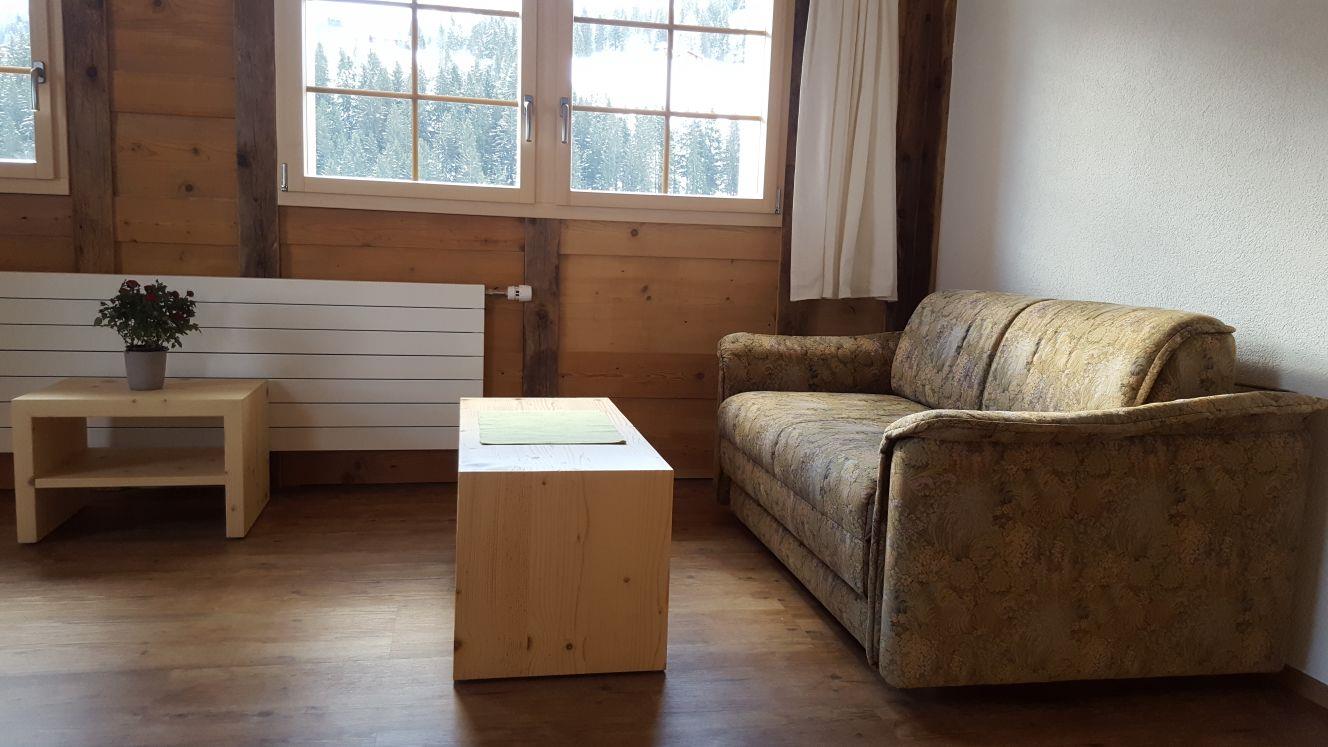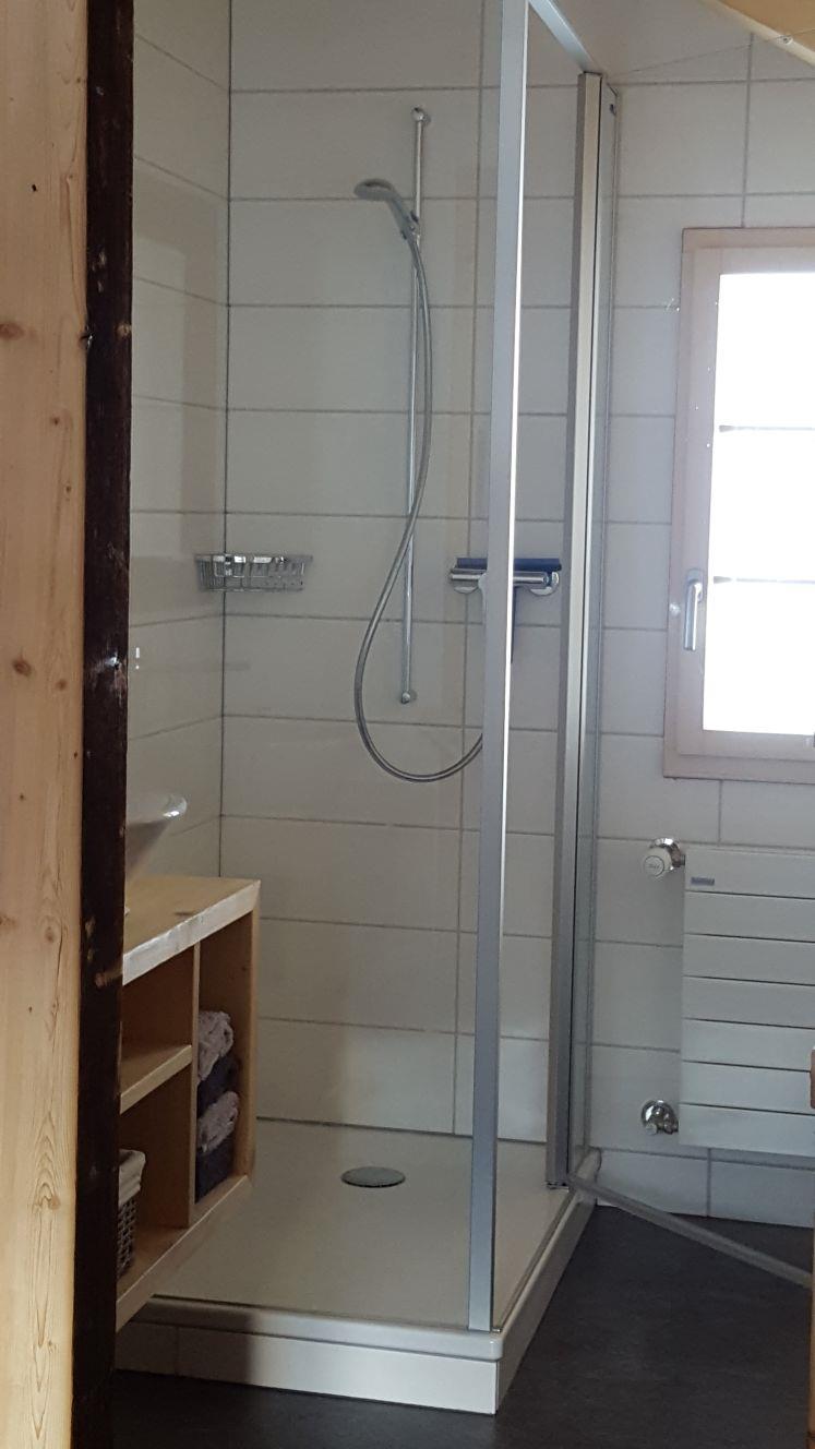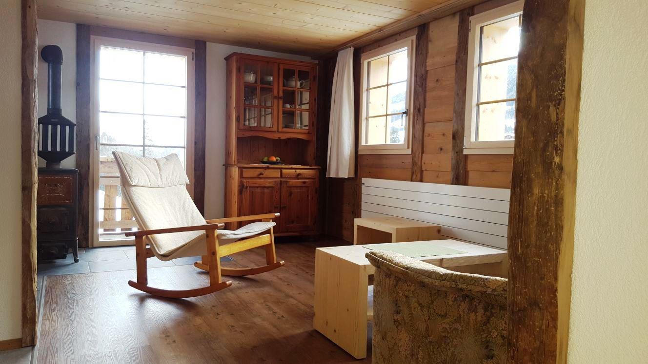 Wir vermieten ein neues, romantisches, rustical ausgebautes Stöckli kleines Chalet nahe zum Bauernhof im Grünen. Es erwartet Sie ein Wohnzimmer mit Sofa (ausziehbar) Schaukelstuhl, TV, Radio und WLAN. Eine kleine Küche mit Kühlschrank, Backofen, 2 Herdplatten, Geschirrspüler und eine Nespresso Kapselmaschine. Im oberen Stock befindet sich 1 Schlafzimmer mit Doppelbett, eine kleine Schlafnische für 1 Matratze oder ein Campingbett sowie 1 Badezimmer mit Dusche und WC + Waschmaschine. Für die Kleider hat es einen geräumigen Einbauschrank. Balkon mit Sicht auf die Berge soiwe sehr ruhiger Sitzplatz. Parkplatz vorhanden. Ausserdem hat es einen Abstellraum für Skis und Velos.