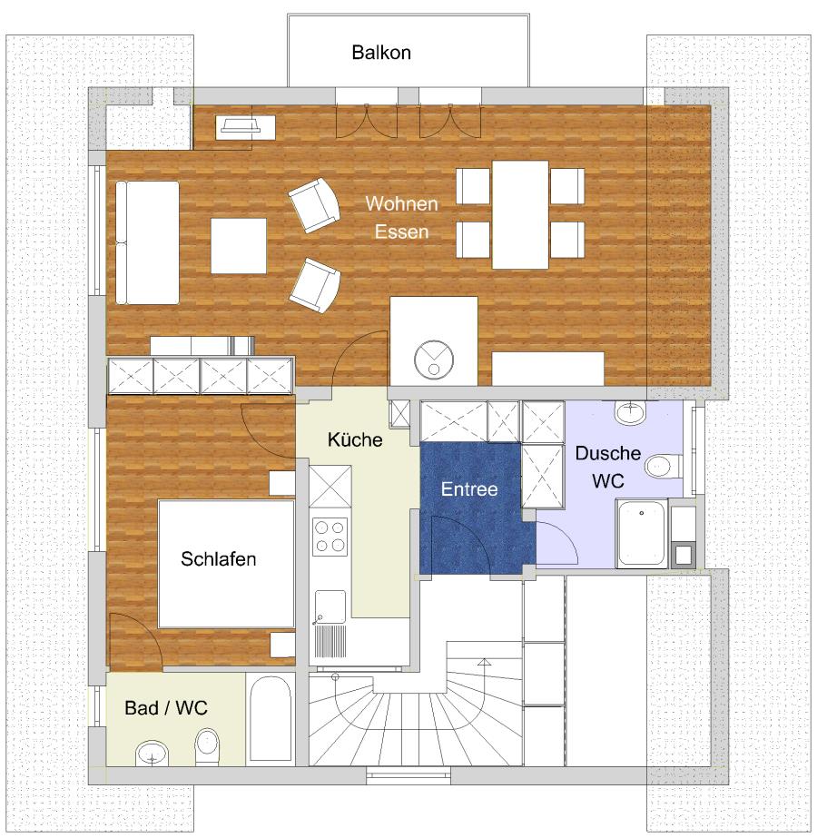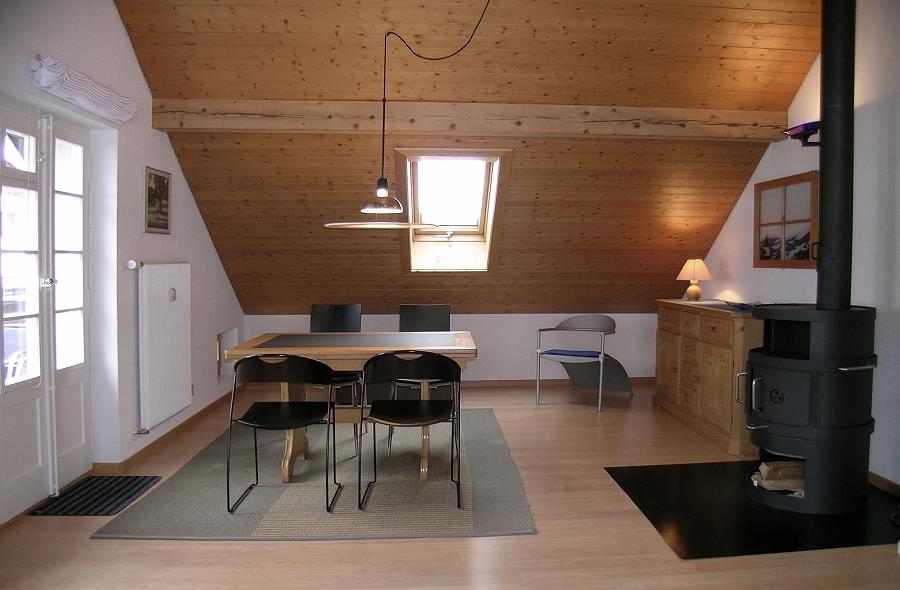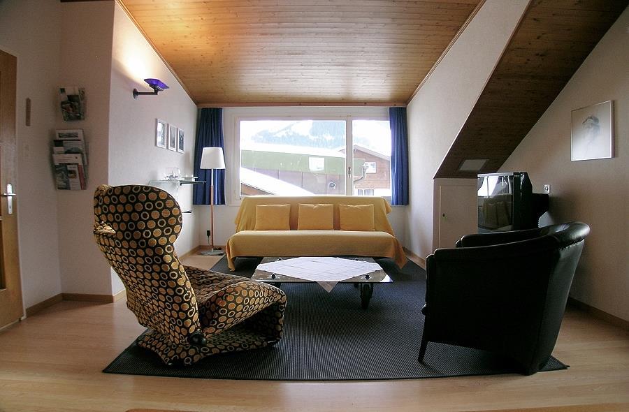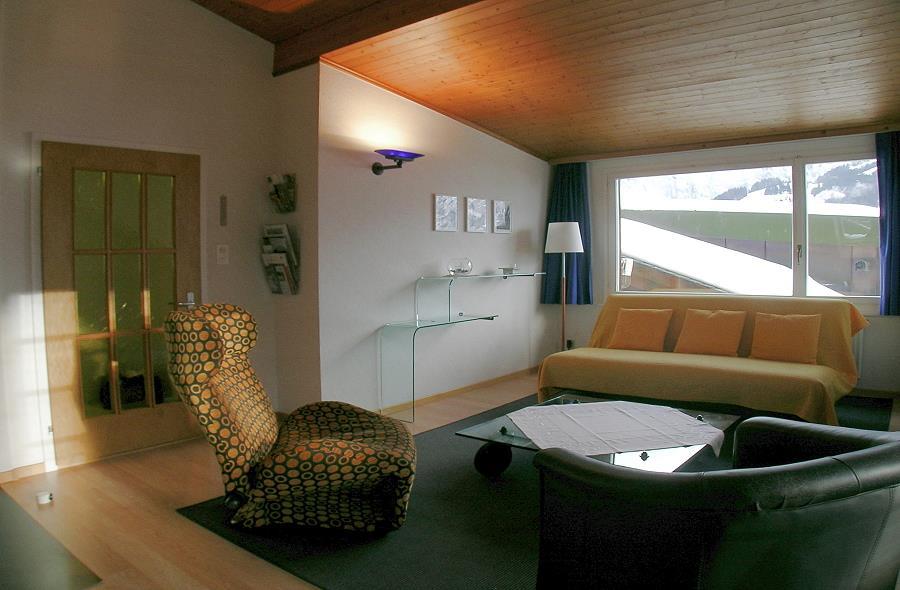 2-Zimmerwohnung im 3. Stock eines 3-Familienhauses im Dorfkern (65 m2). 2 Gehminuten zu den Bergbahnstationen. Grosses Wohn-Schlafzimmer mit Schlafsofa (175 x 219 cm) und Cheminée-Ofen, Radio/CD/DVD/Video/TV mit Satellitenanschluss. Schlafzimmer mit Doppelbett (180 x 190 cm) mit angrenzendem Bad/WC. Separate Küche mit Backofen, Kühlschrank, elektrischem Glaskeramikherd, Kaffeemaschine (Nespresso), Fondue-/Raclettegeschirr; Entrée mit Garderobe/Ablagefläche; Dusche/WC. Balkon gegen Südwesten mit traumhafter Aussicht. Mitbenützung Skiraum, Waschmaschine, Tumbler. Haustiere sind nicht erlaubt.