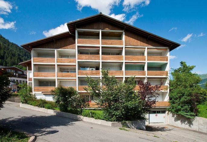 Studio (29m2) im 1. Stock. Mehrfamilienhaus mit 30 Wohnungen. Bad/WC. Wohn-Schlafzimmer mit 2 Betten. Kabel-TV, WLAN, Küche mit Grill-Mikrowelle, Kühlschrank, Geschirrspüler, Küchentücher, Spülmaschine, Balkon, Garage, Lift, Waschmaschine, Skiraum. Haustiere sind nicht erlaubt.