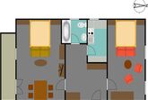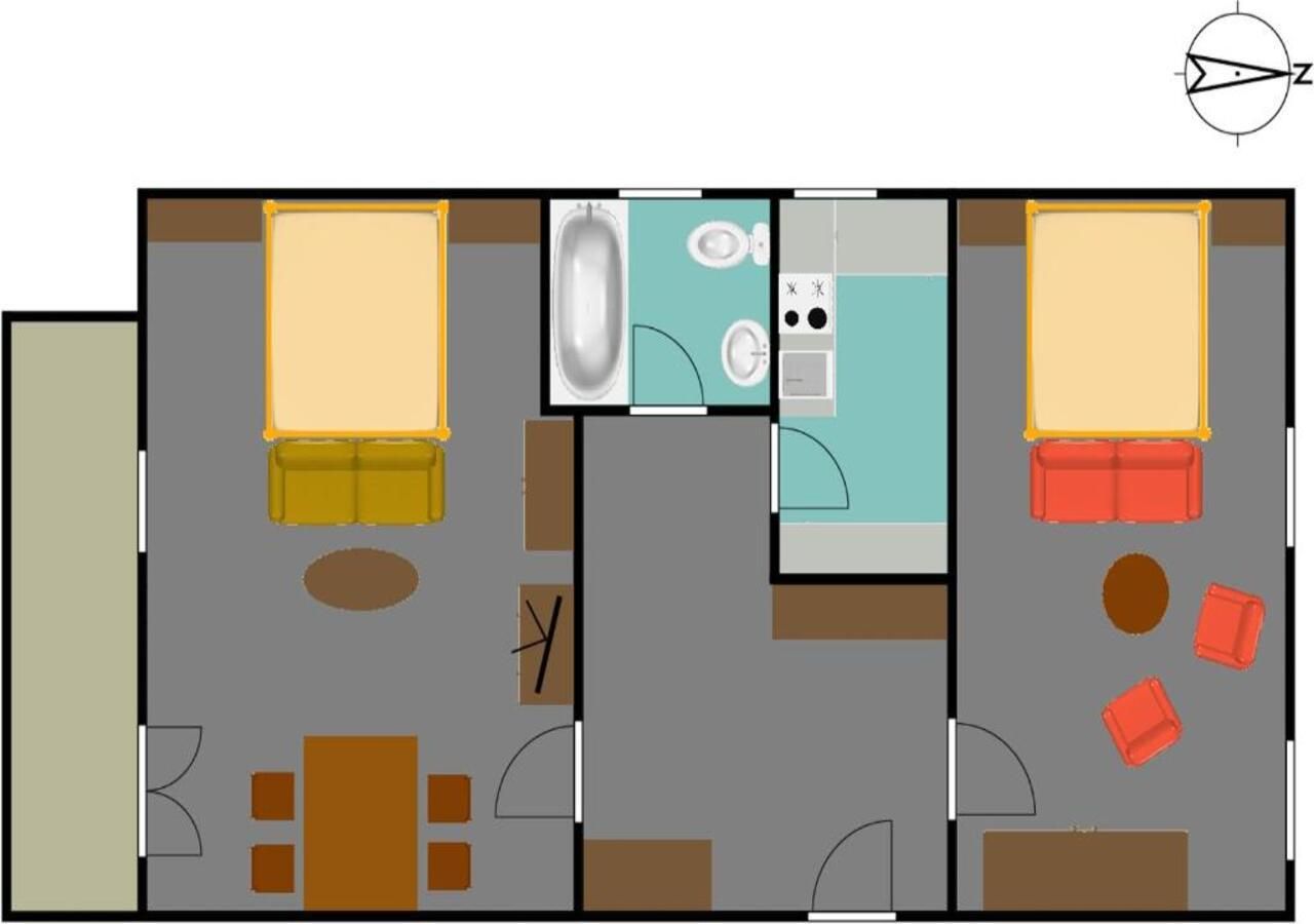 Die Wohnung ist ca. 63 m² groß und verfügt über ein Wohn/Schlafzimmer mit Doppelbett, ein Bad/WC, eine separate kleine Küche mit 2 Herdplatten, Kühlschrank, Geschirrspüler, Wasserkocher, Kaffeemaschine und Toaster und ein separates Schlafzimmer mit einem weiteren Doppelbett.