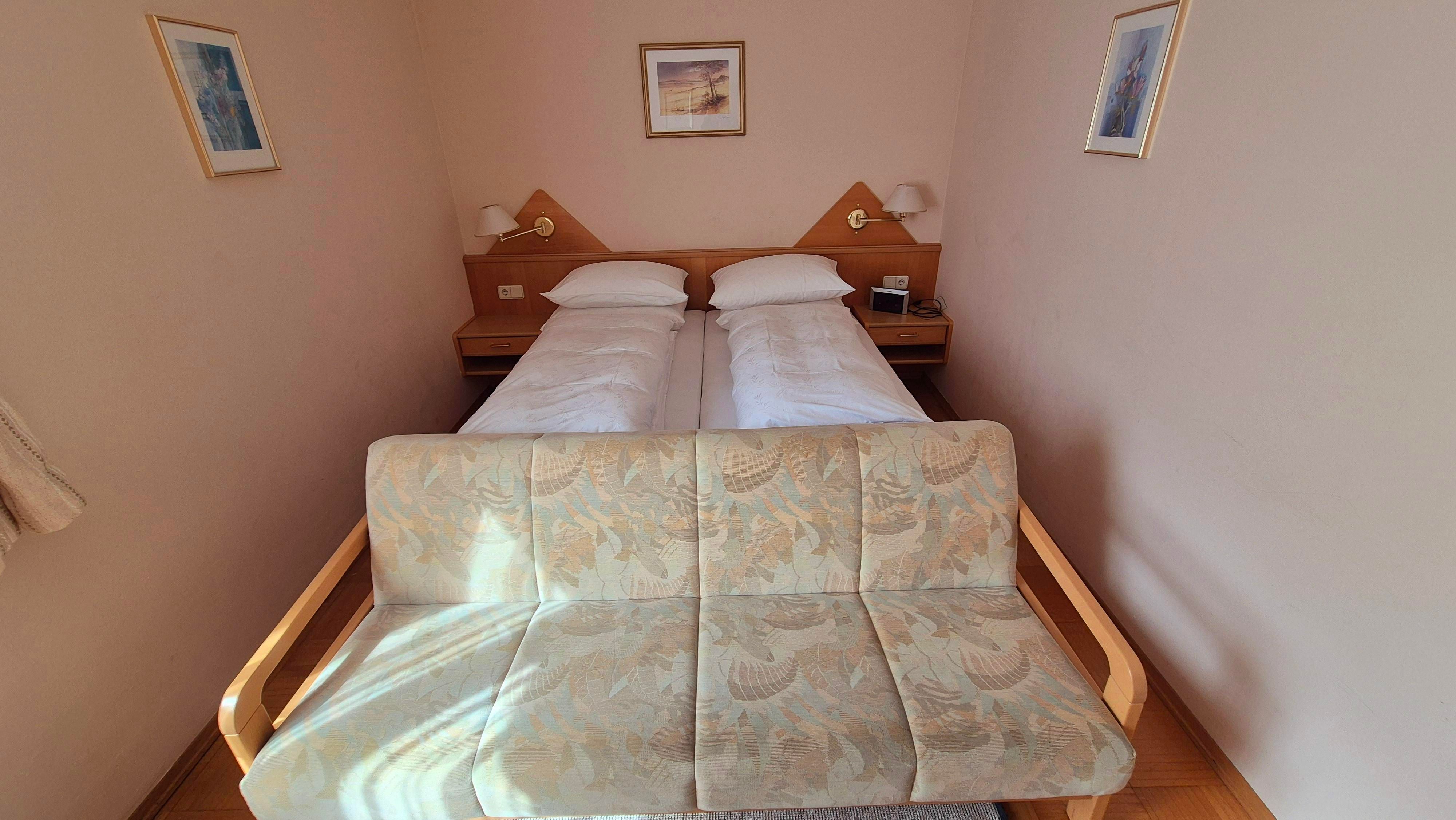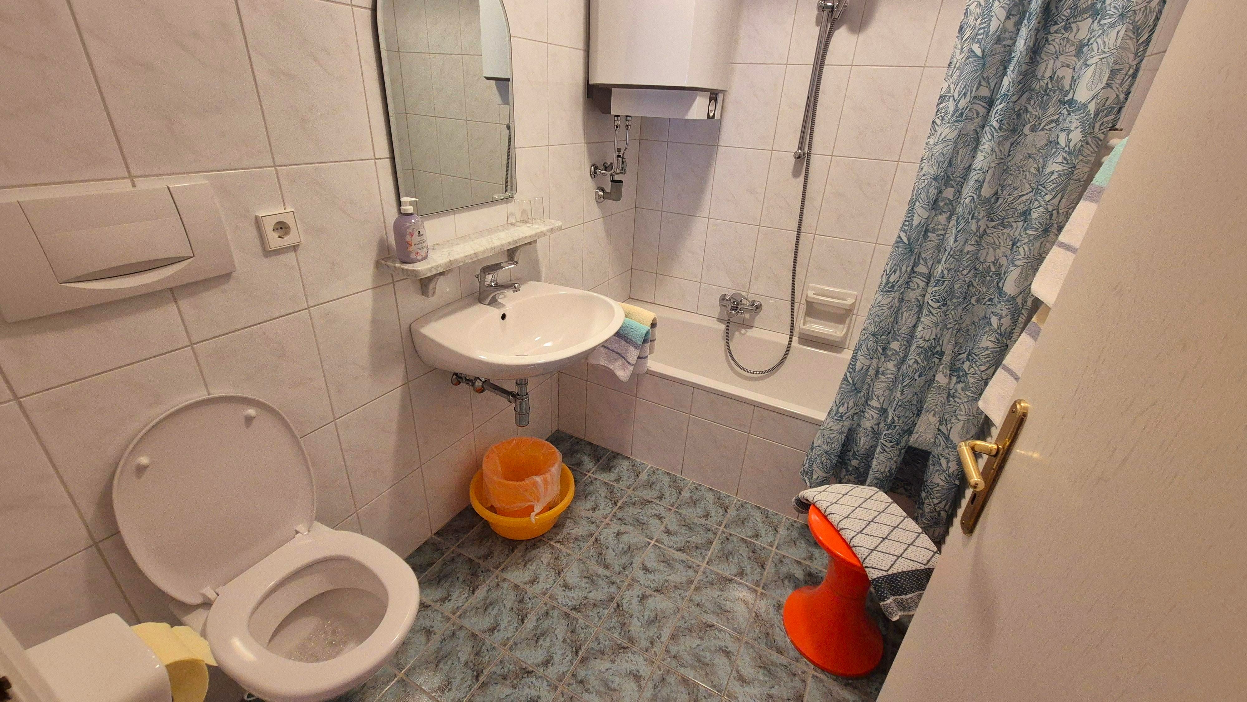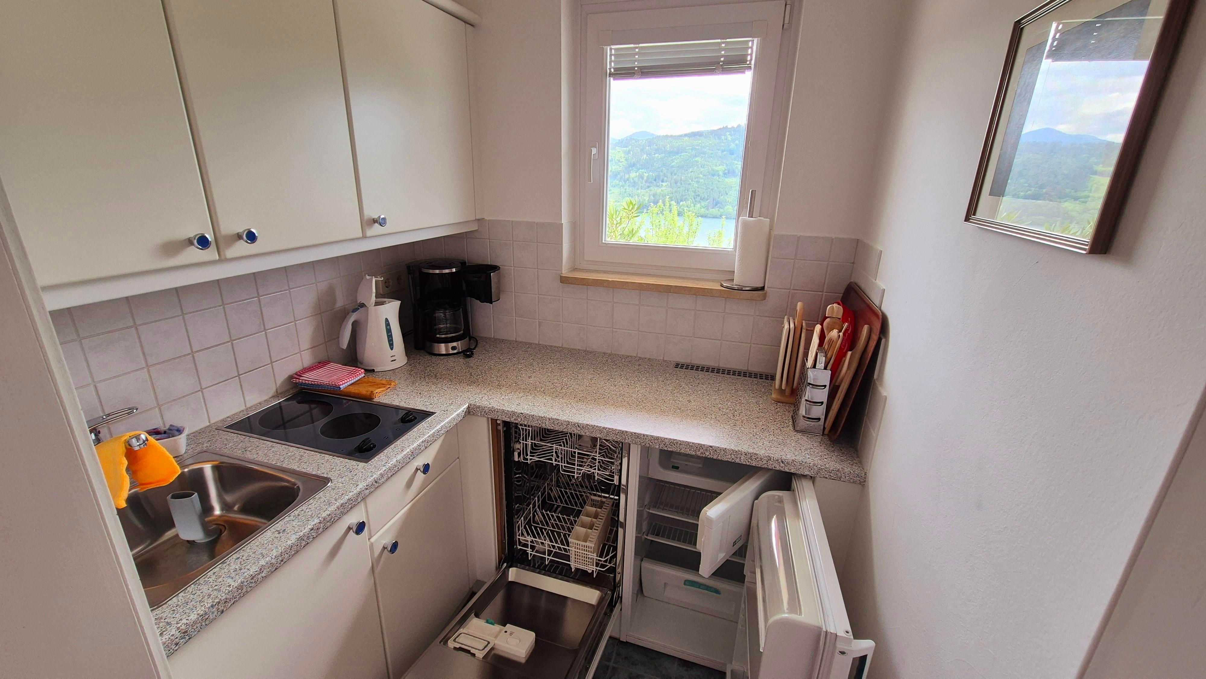 Die Wohnung ist ca. 55 m² groß und verfügt über ein Wohnzimmer mit Schlafcouch für 2 Personen, eine kleine separate Küche mit 2 Kochplatten, Kühlschrank, Geschirrspüler, Wasserkocher, Kaffeemaschine und Toaster, ein Schlafzimmer für 2 Personen und ein Bad/WC.