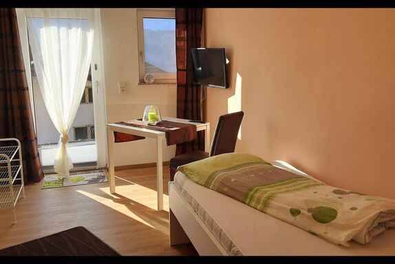 Das neue, modern eingerichtete Gästezimmer bietet Platz für 1 Person und verfügt über ein Einzelbett, Sat-TV und ein modernes Bad mit Regendusche.