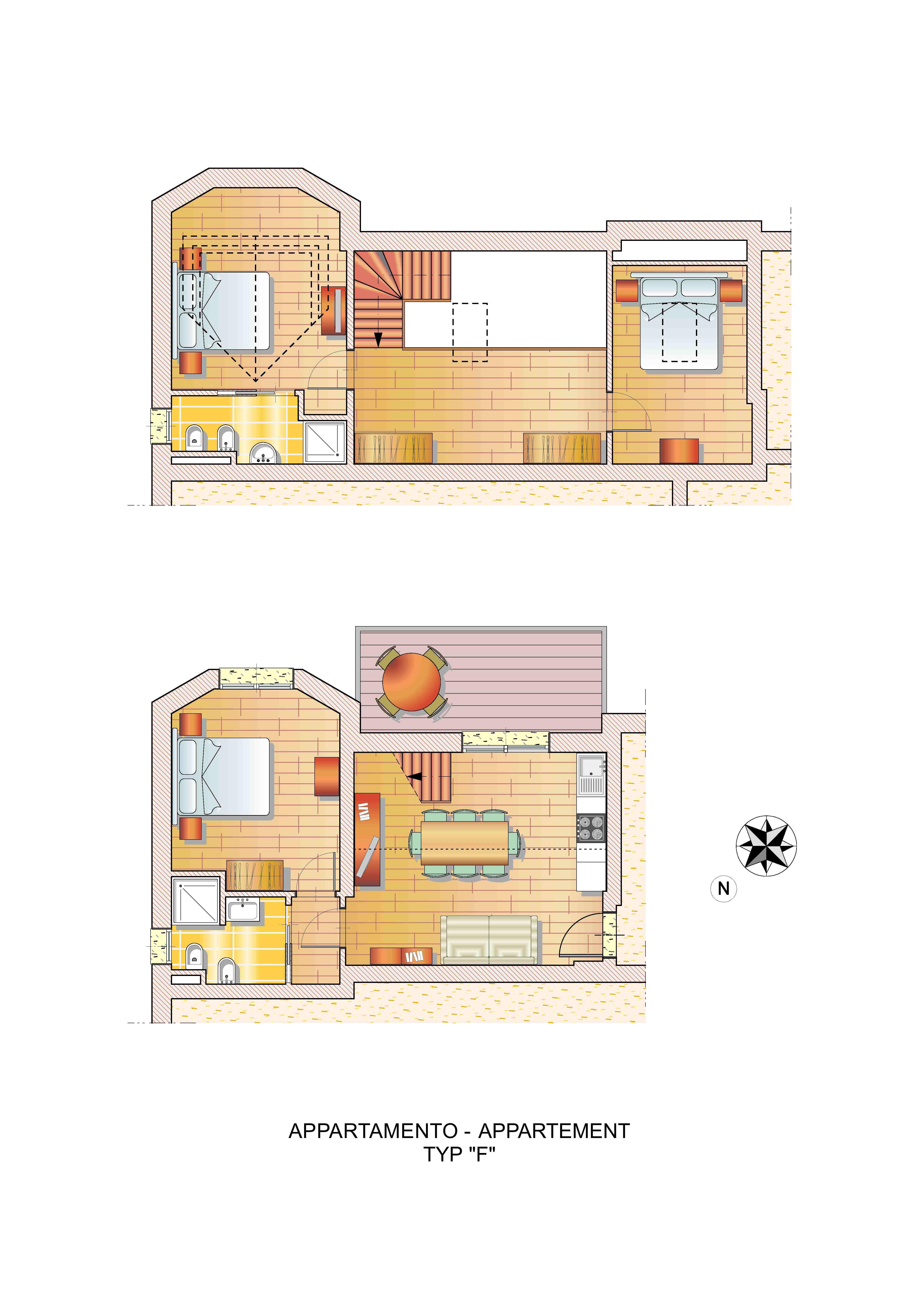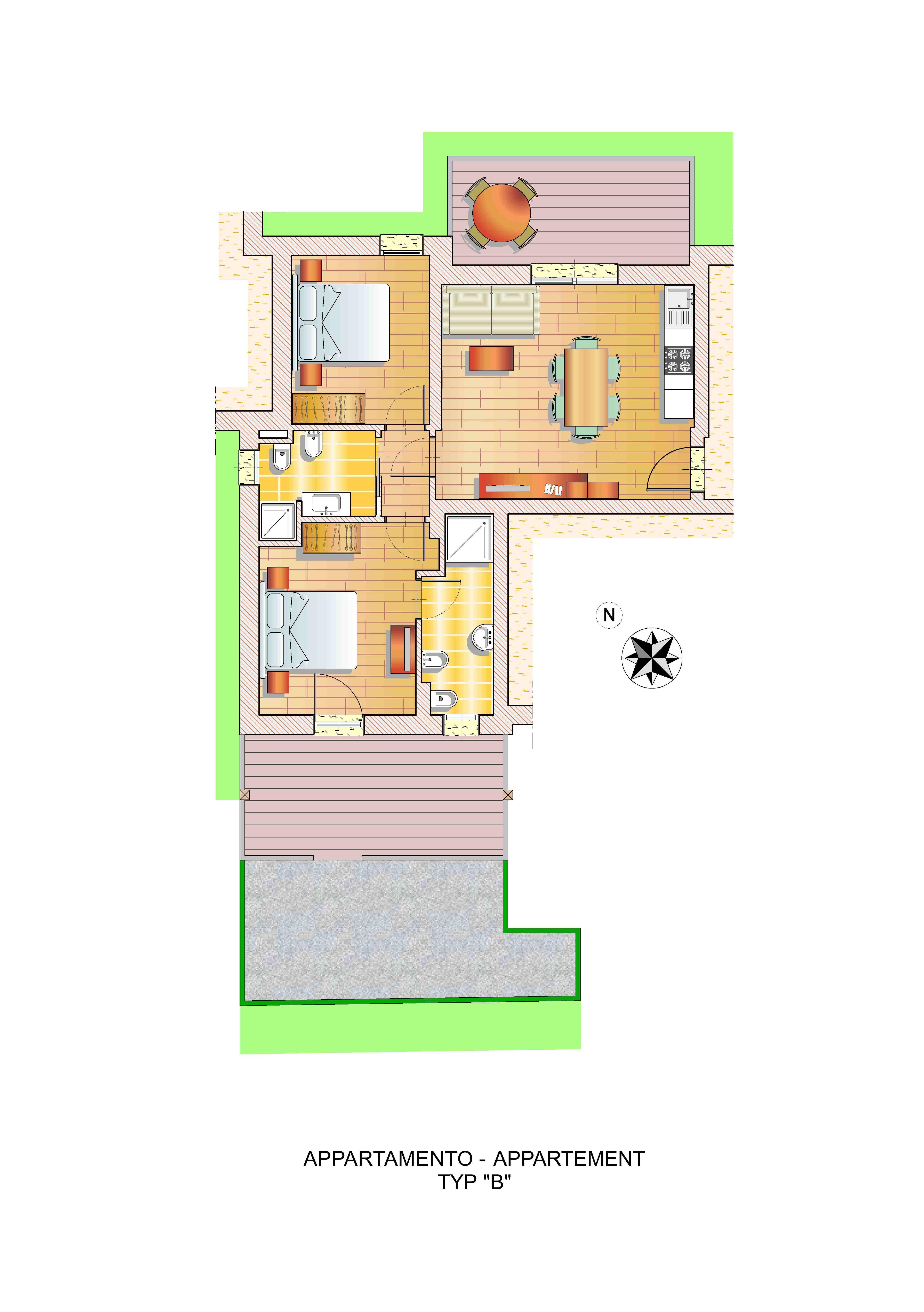 Zweiraumappartement für 2-4 Personen (zirka m² 40) bestehend aus: