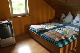 Eine Wendeltreppe führt Sie in die Mansarde mit 1 Doppelbett und 1 Einzelbett. Geeignet für 2-4 (evt.5 ) Personen.